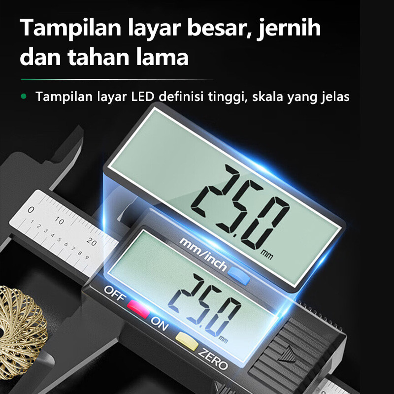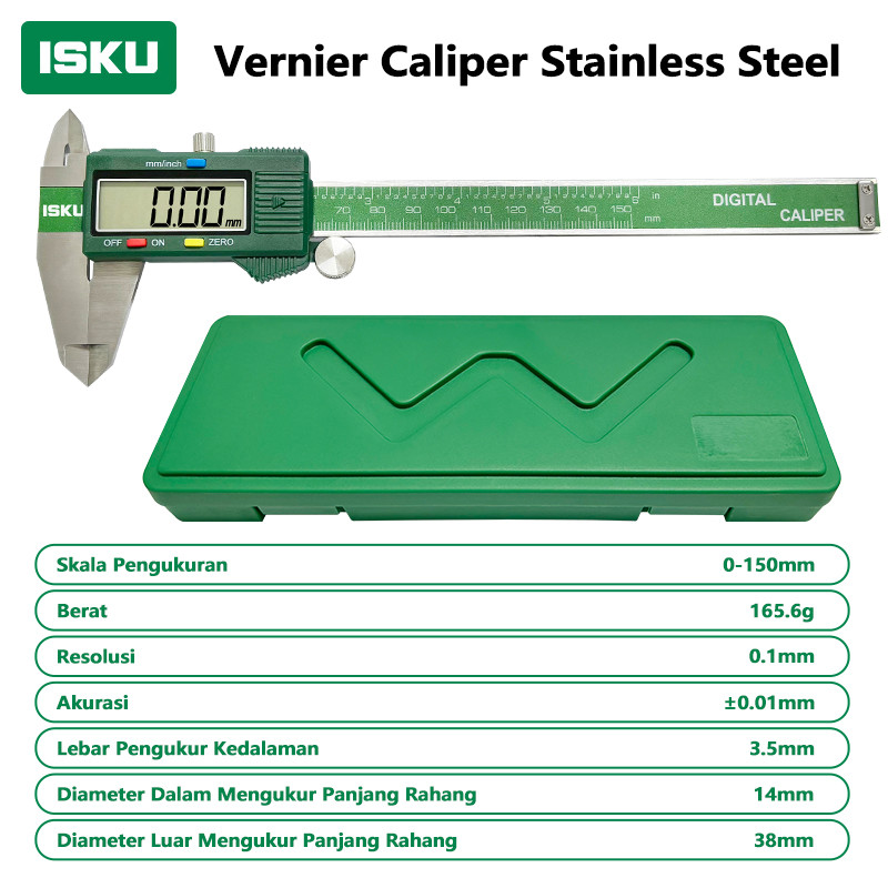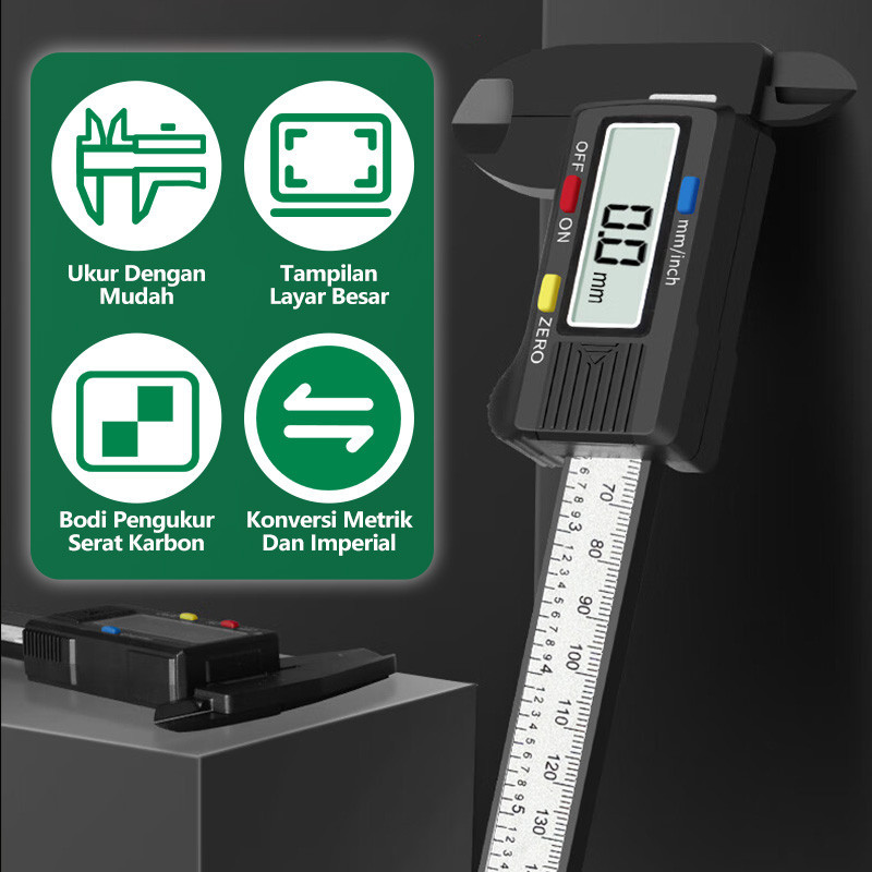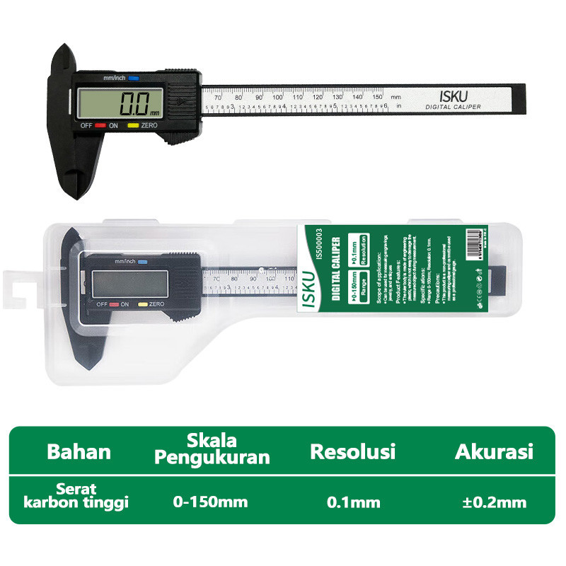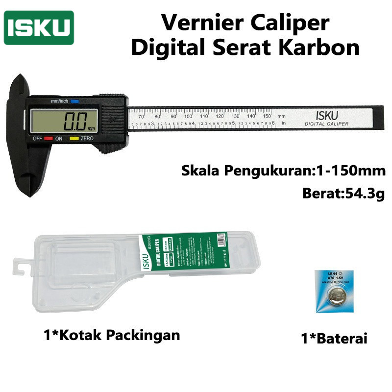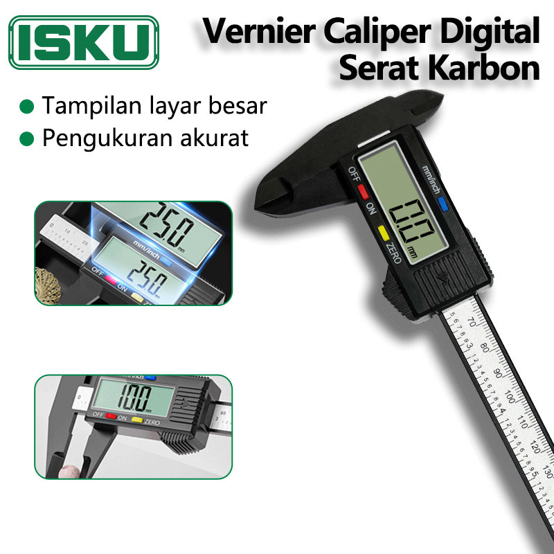 Isku Vernier Caliper Digital Serat Karbon 150mm Pengukuran Tanpa Konversi Vernier Caliper
