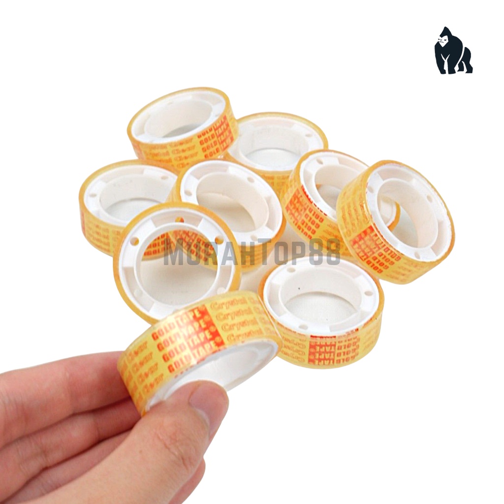 Isolasi Bening Kecil 1/2 inch Gold Tape / Selotip Solasi Kado Tipis / Cellotape Goldtape 12 mm x 10 yard [PER PCS]