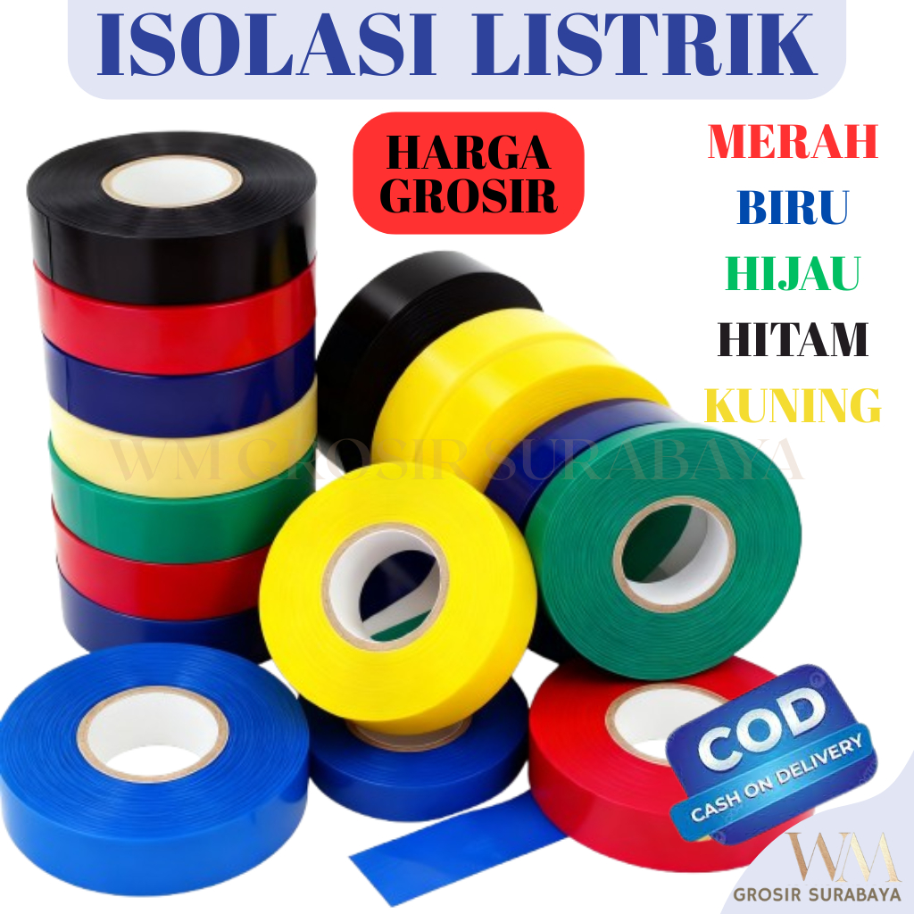 Isolasi Kabel Listrik PVC Electrical Tape 18mmx20yard Solasi Lakban Solatip Pengbungkus Kabel Listrik