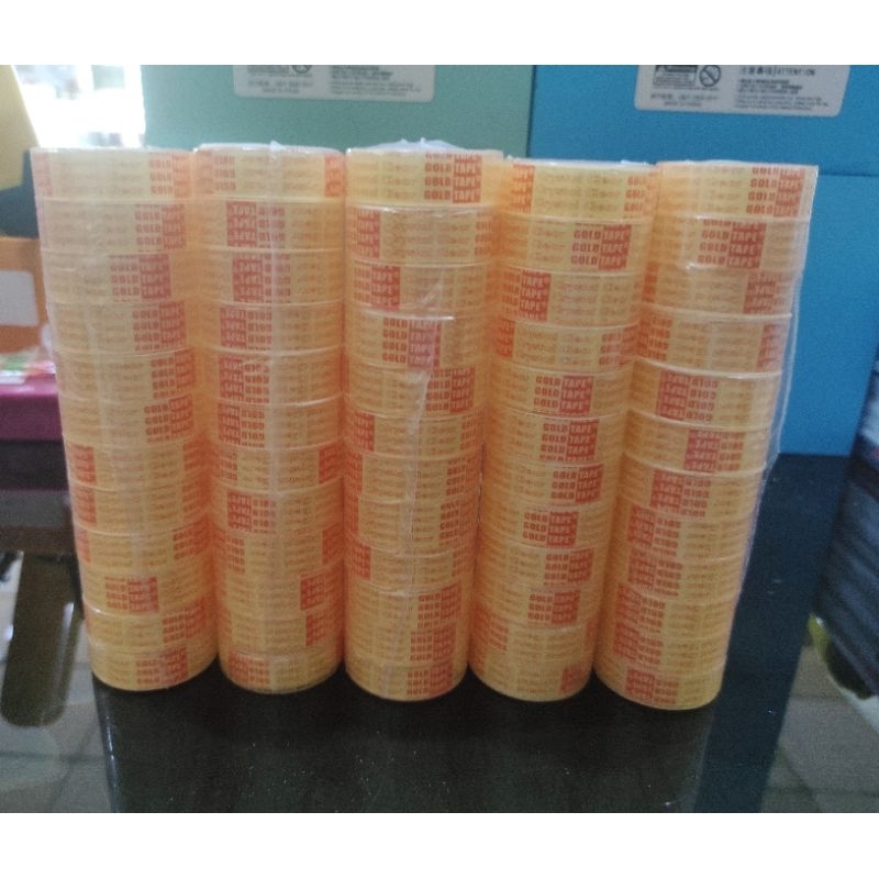Isolasi Kado Kecil Bening / Solatif Kado Gold Tape Kecil / Isolasi Kecil Bening (12) Pcs