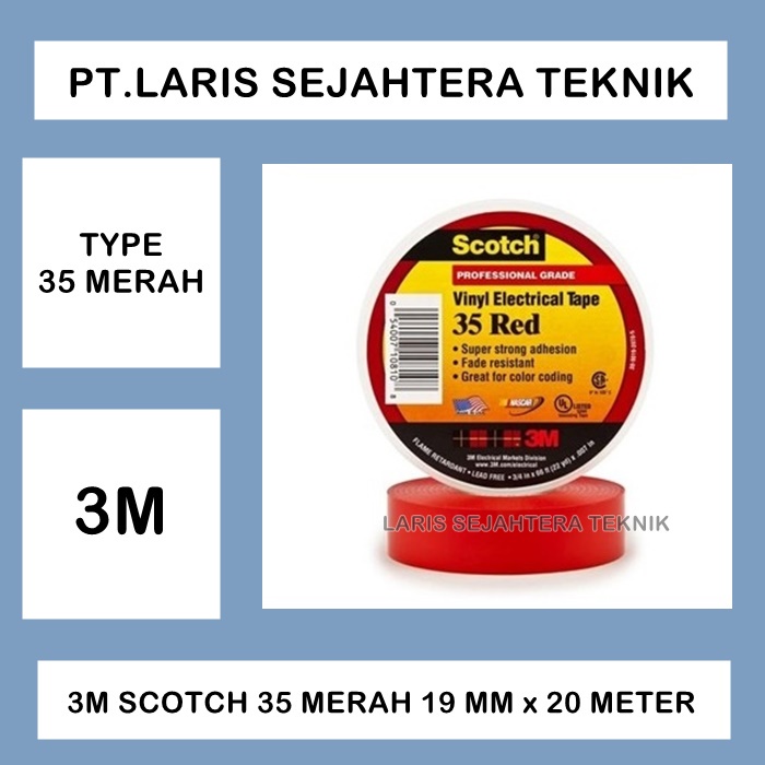 Isolasi Listrik Vinyl Electrical Tape 3M Scotch 35 Warna Merah