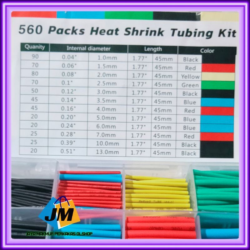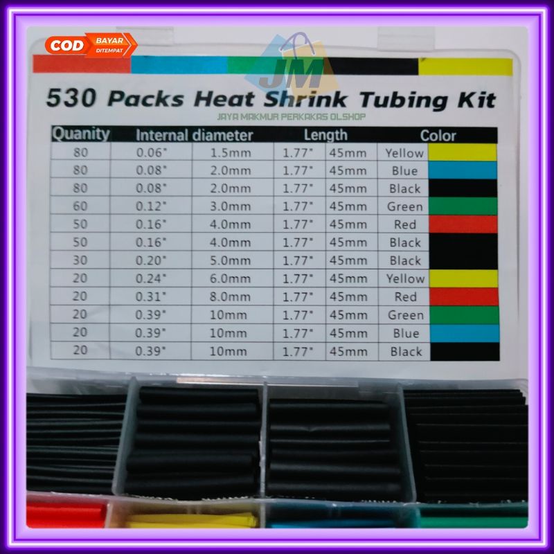 Isolasi bakar heatshrink 560Pcs 530 pcs dan 328 pcsHeat Shrink Tube Isolasi Bakar Kabel Selang Bakar Selongsong Bakar/burn tape