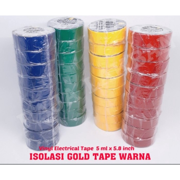 Isolasi kabel Goldtape Warna Warni Hitam / Biru / Merah / Kuning / Hijau / isolasi listrik / pvc 15mm Isolasi warna vynil solasi