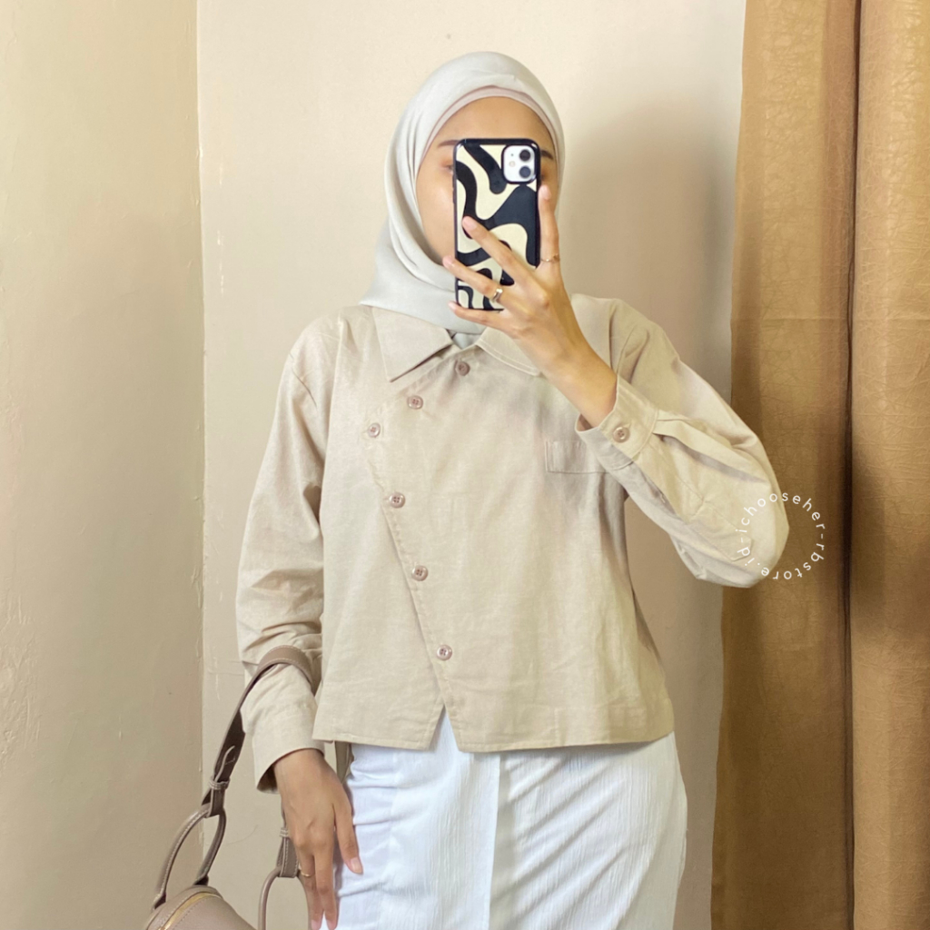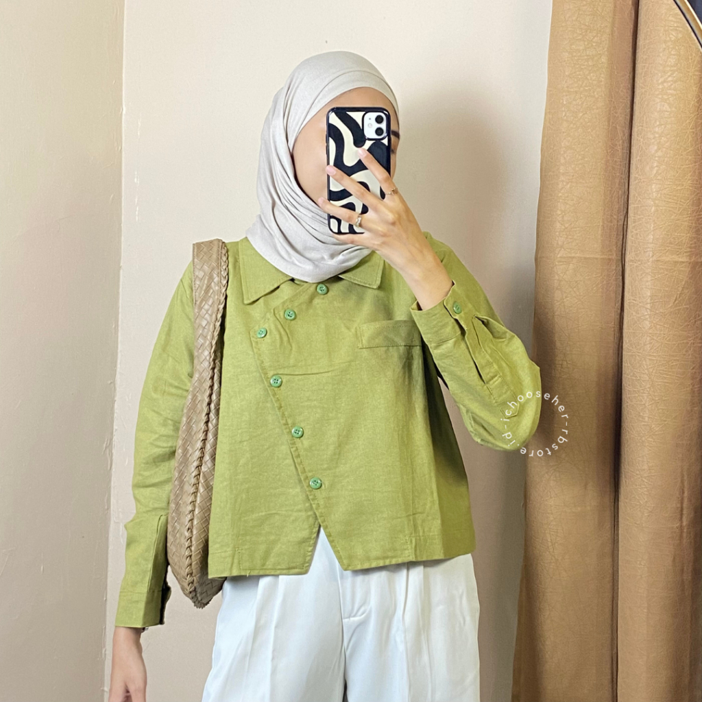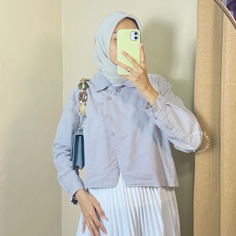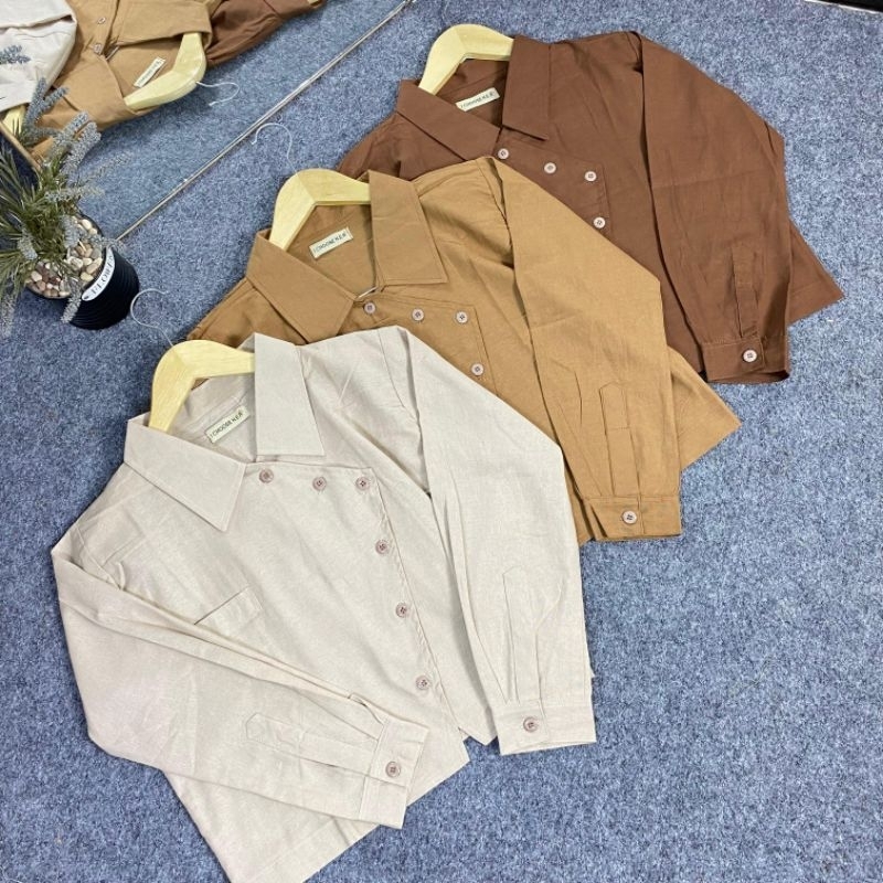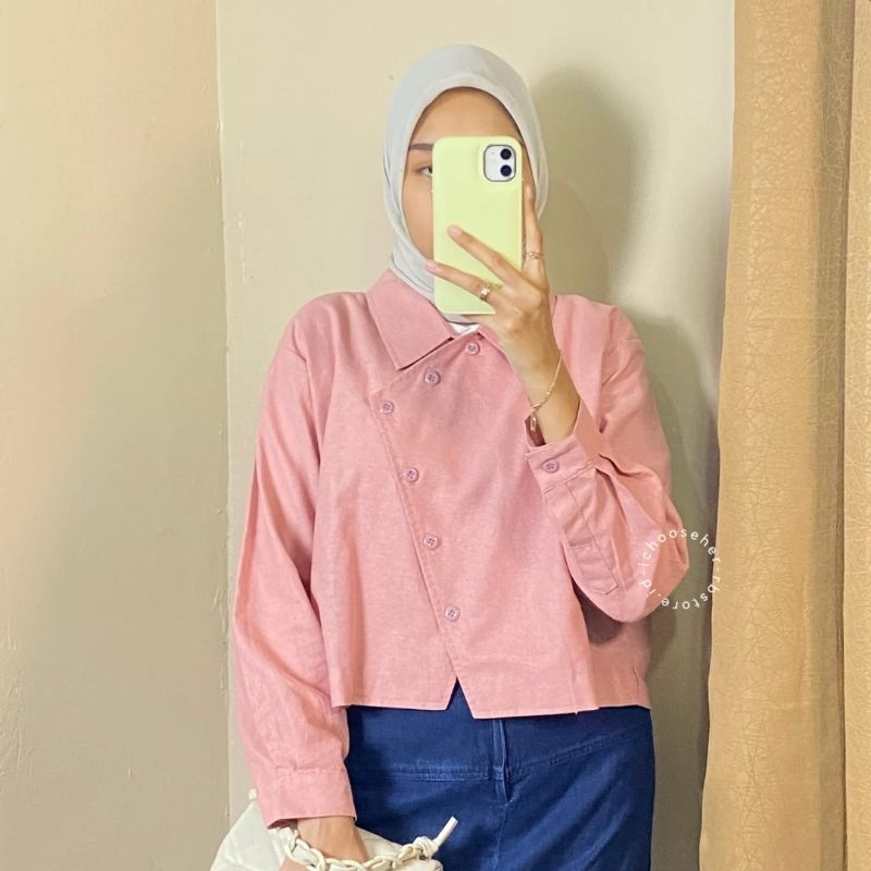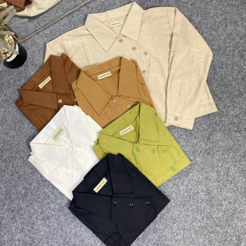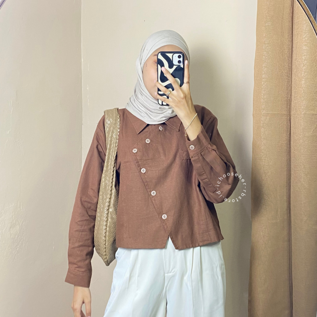 Ivone Top Outer Linen Atasan Crop Wanita