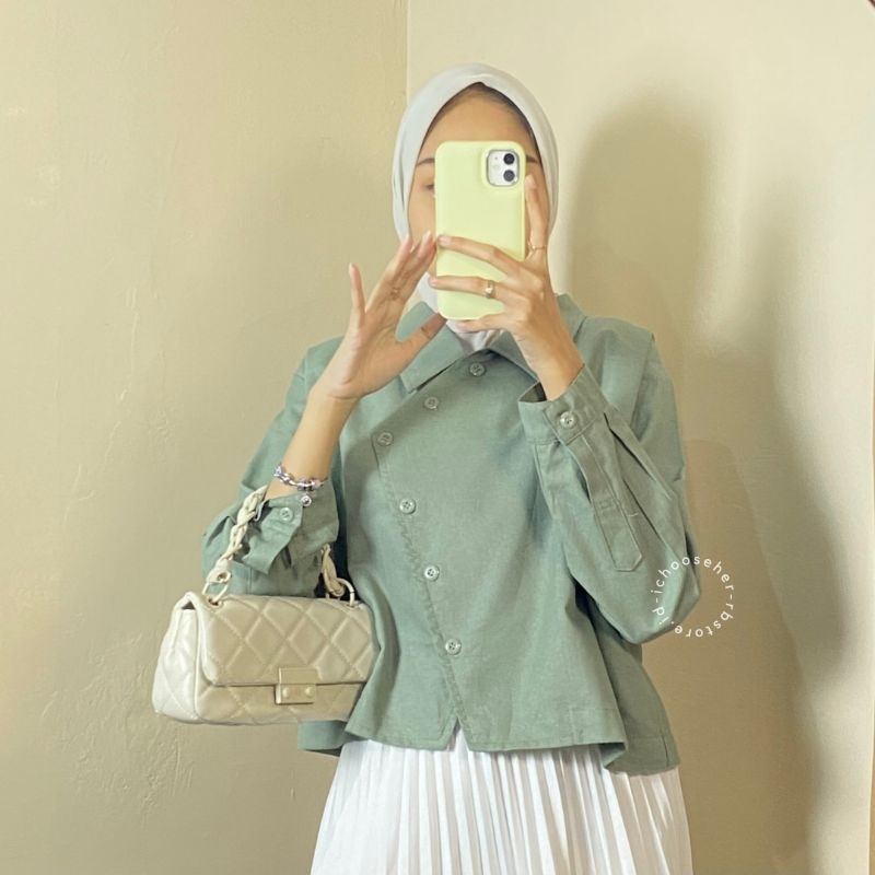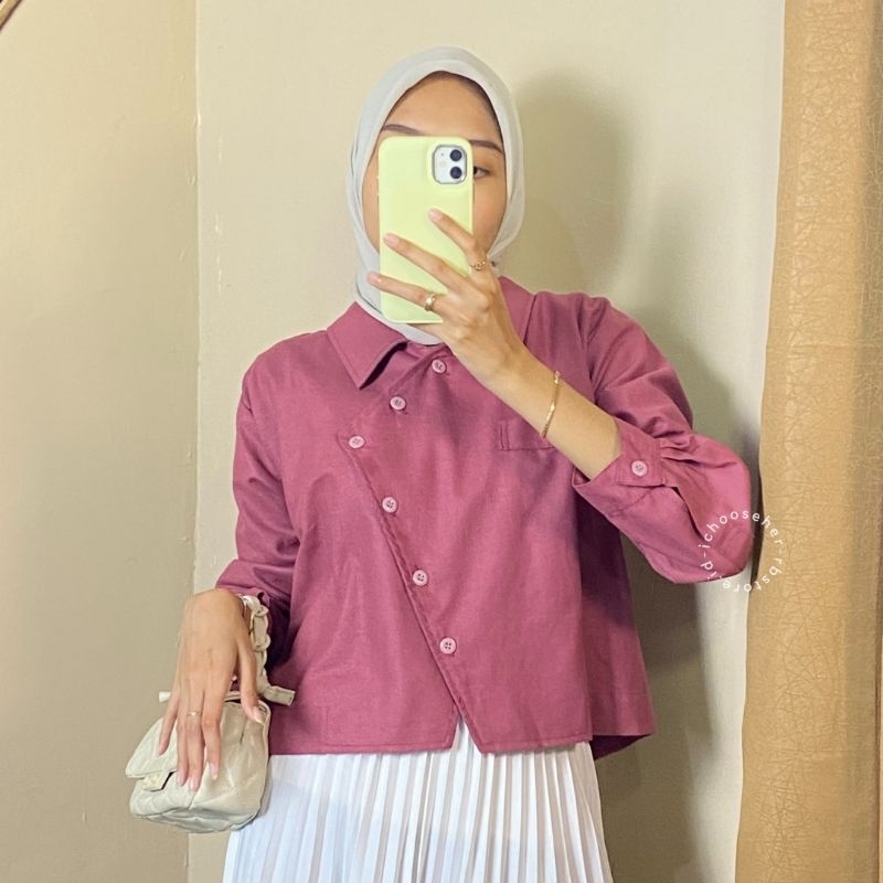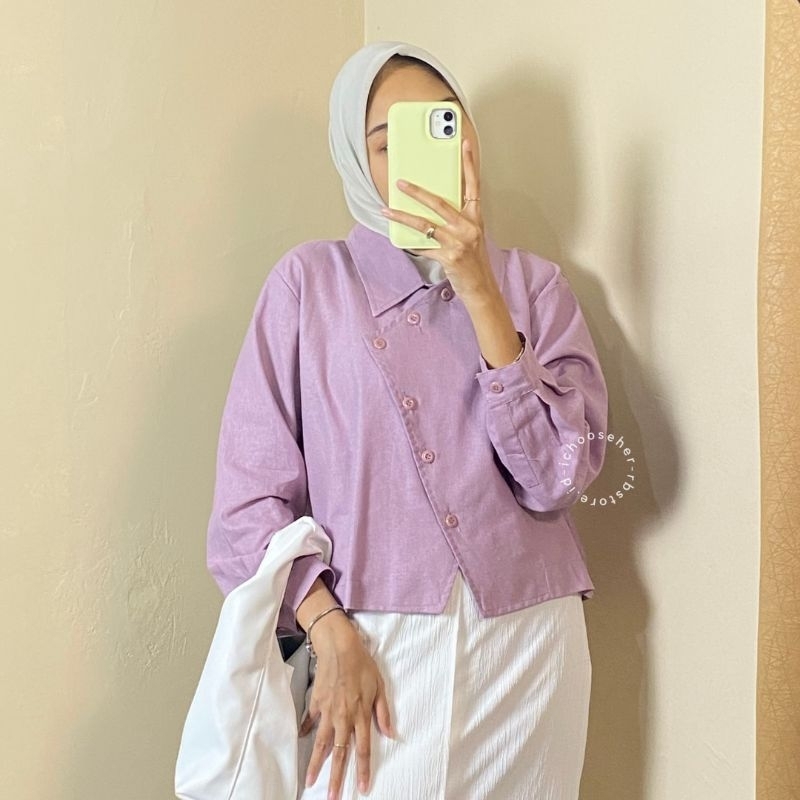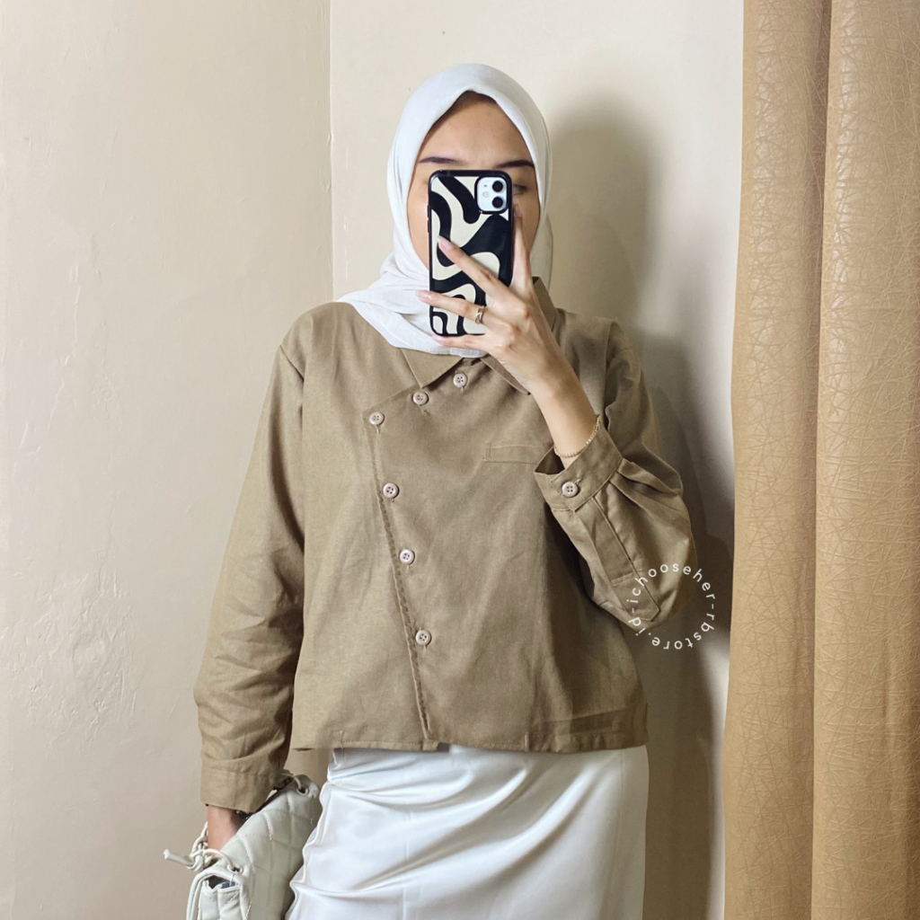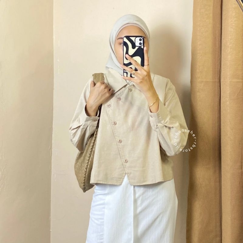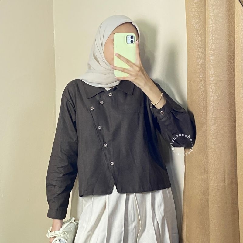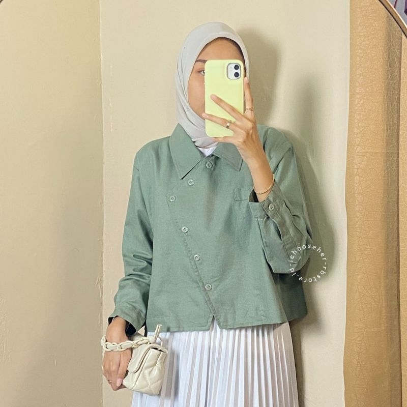 Ivone Top Outer Linen Atasan Crop Wanita