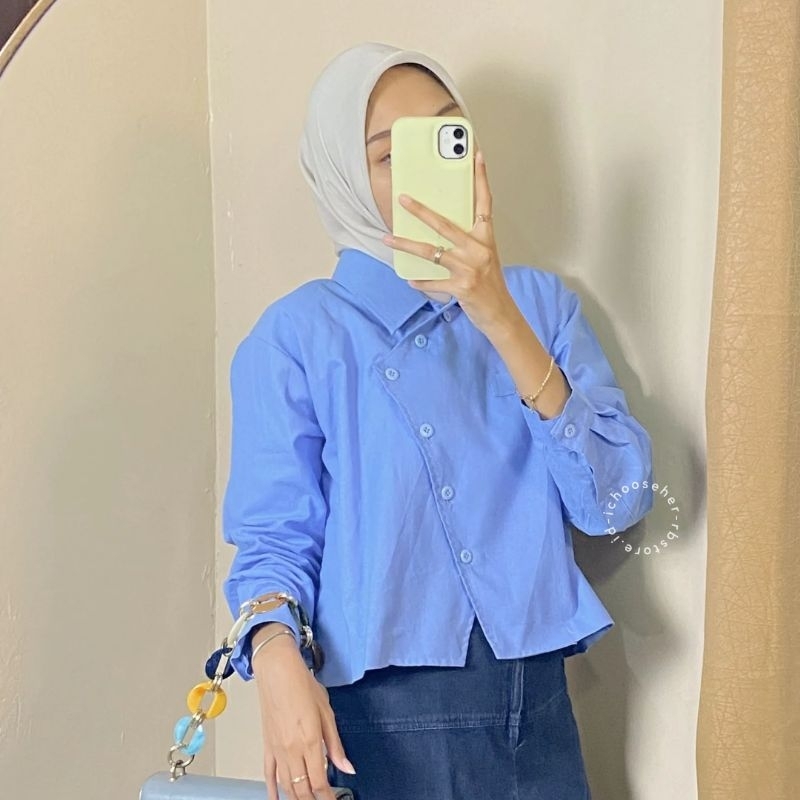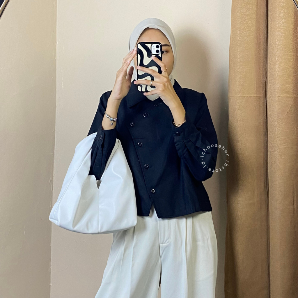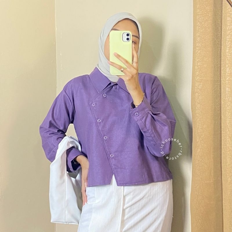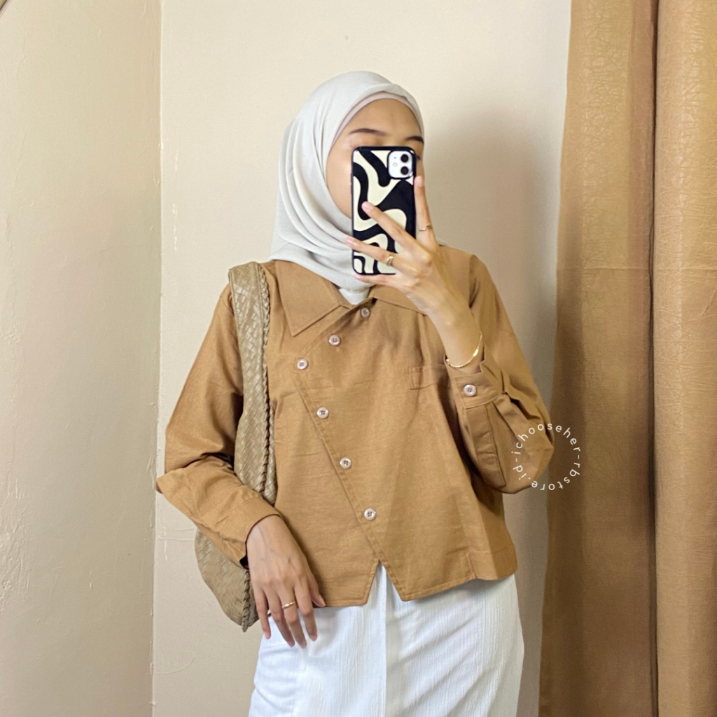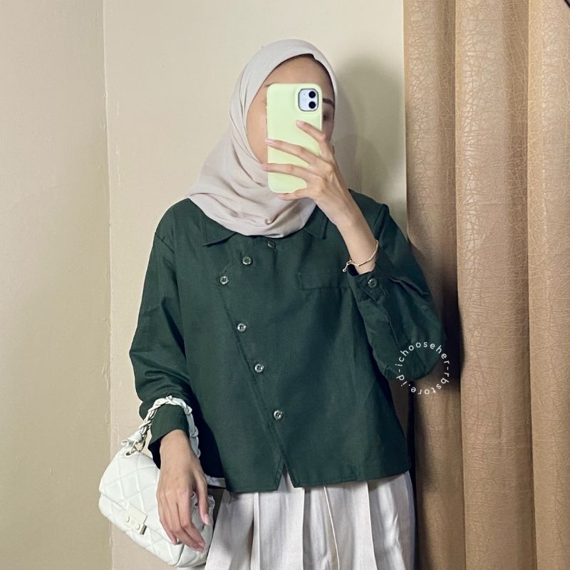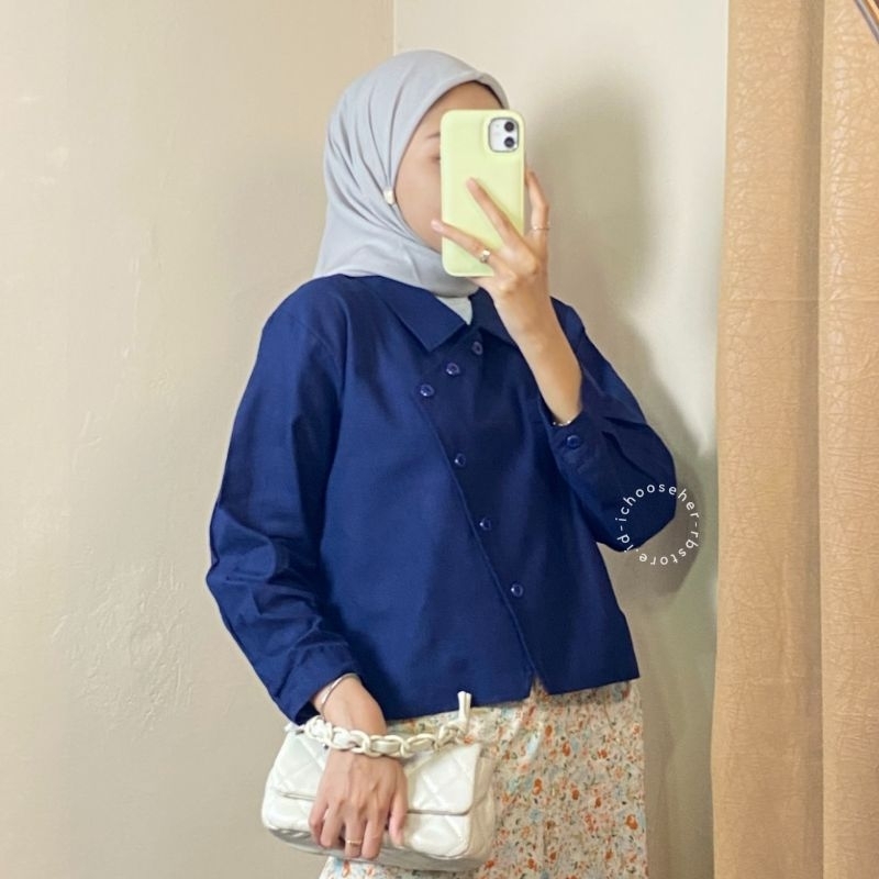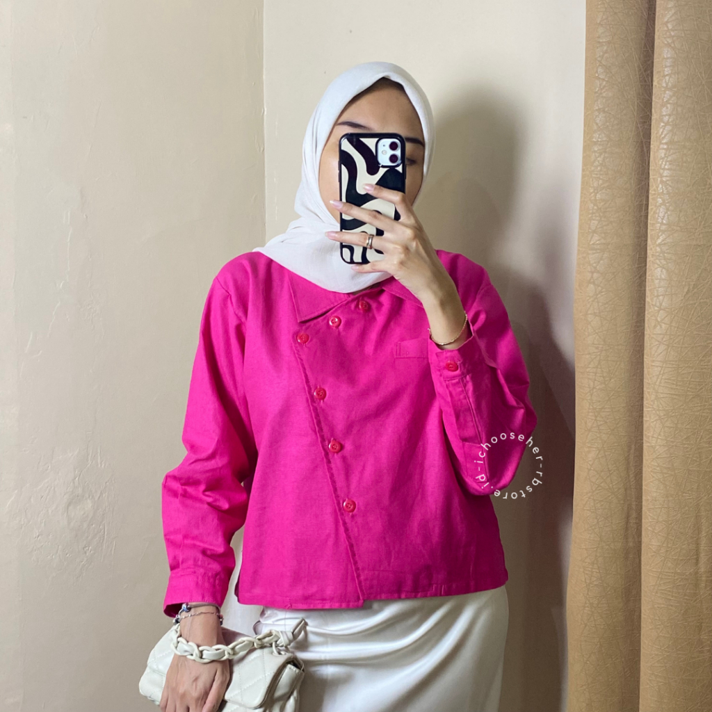 Ivone Top Outer Linen Atasan Crop Wanita
