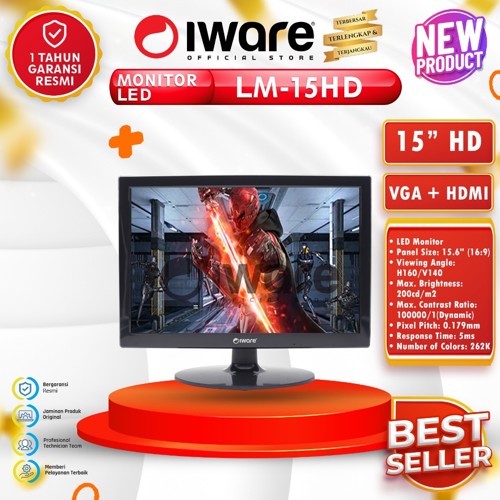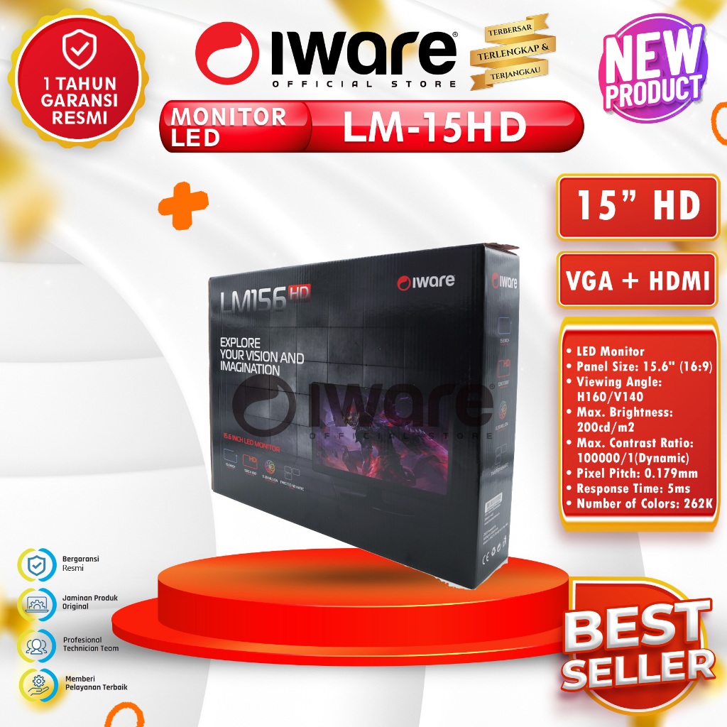 Iware Led Monitor LM-156 15.6 inch HD VGA HDMI