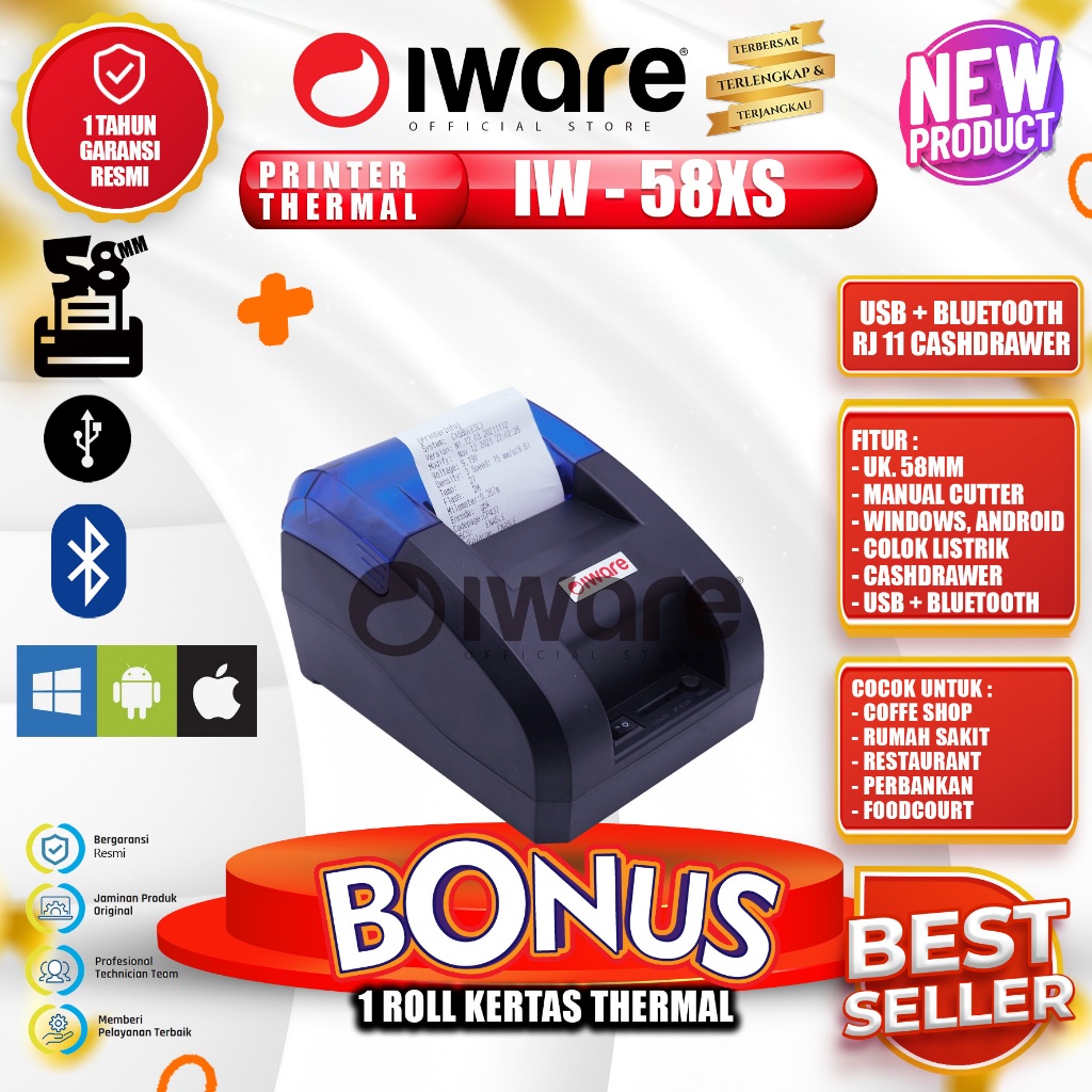 Iware Printer Thermal Kasir Usb Bluetooth RPP02N PPOB C-58XS | ZJ-58BT | PI-58BT RJ 11 Cashdrawer Windows Android