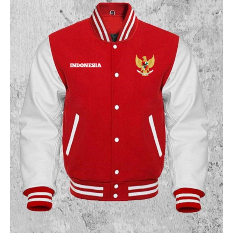 JAKET BASEBALL MERAH PUTIH LOGO GARUDA INDONESIA BIG SIZE M L XL XXL XXXL XXXXL XXXXXL JUMBO 2XL 3XL 4XL 5XL 6XL VARSITY JAKET