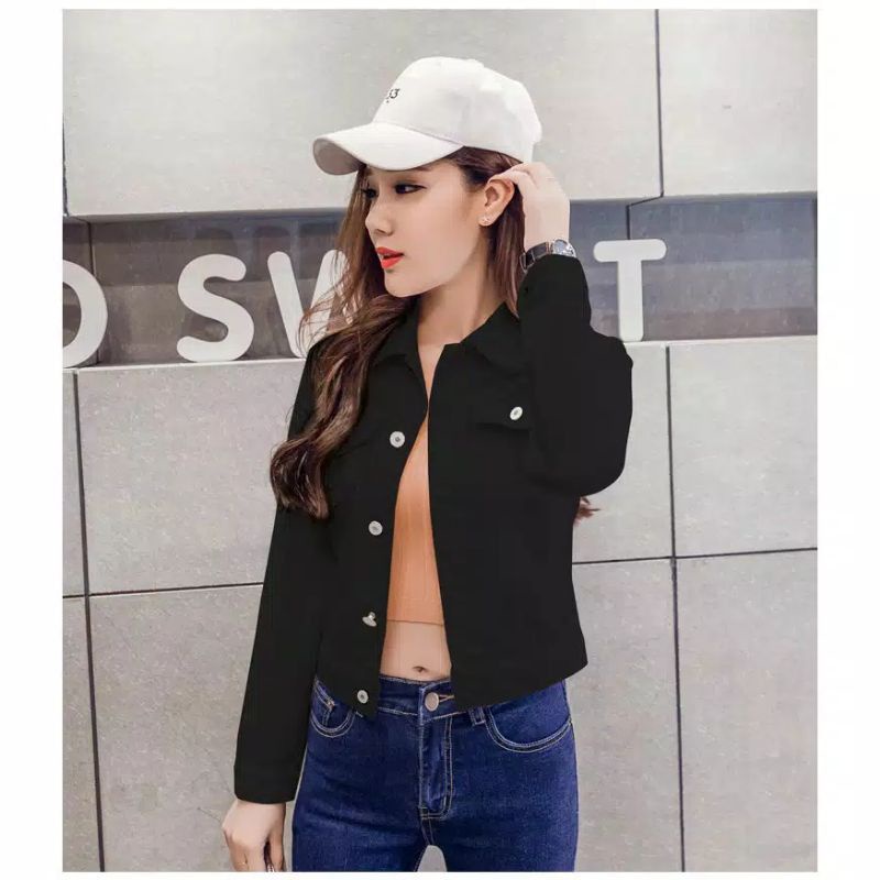 JAKET JEANS BAGGY VINTAGE SNOW BLACK JAKET CROP GIRLS WANITA CEWEK MURAH TERBARU JAKET JINS BIONDY DENIM