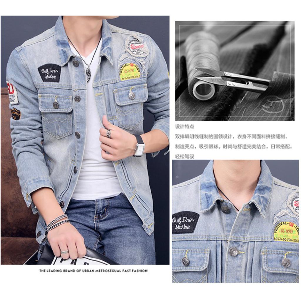 JAKET JEANS PRIA JAKET PRIA TERBARU JAKET LOGO JAKET EMBLEM JAKET SOBEK JAKET BOMBER JAKET PAR