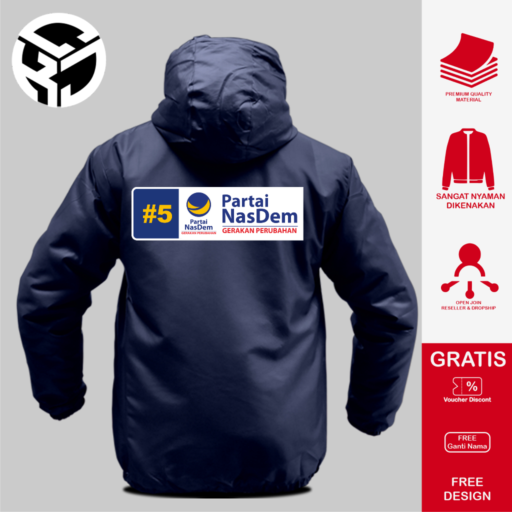 JAKET PARTAI NASDEM JAKET NASDEM WARNA NAVY DAN HITAM LOGO BISA DI COSTUM SATUAN DAN PARTAI BESAR ORIGINAL CIKAJANGSTOREID