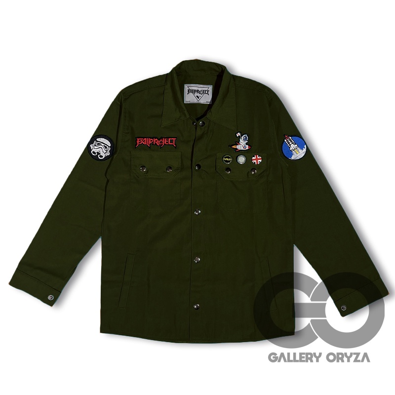 JAKET PRIA SEMIPARKA HIJAU ARMY FULL BORDIR - Field Jacket semi parka | Jaket Trucker semi parka pria / cowok Hijau full bordir ( emblem ) hijau original distro Bandung ukuran M - XXL