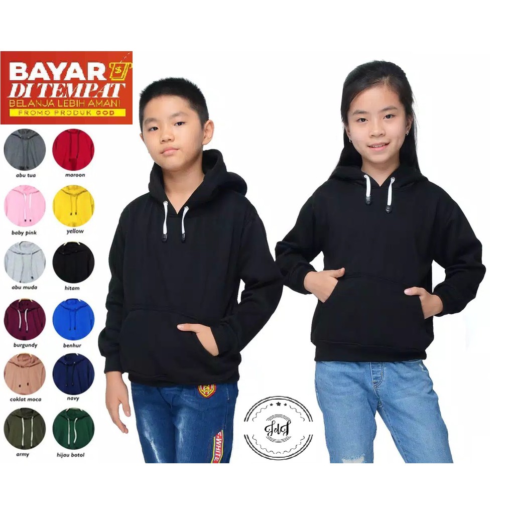 SWEATER POLOS HOODIE JUMPER ANAK-ANAK DARI UMUR 5-12 TAHUN UNISEX (WANITA & PRIA)