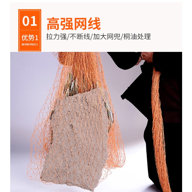 JALA LEMPAR NELAYAN JARING IKAN BAHAN NYLON KAIN KUNING KECOKLATAN 2m