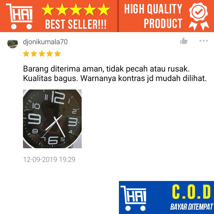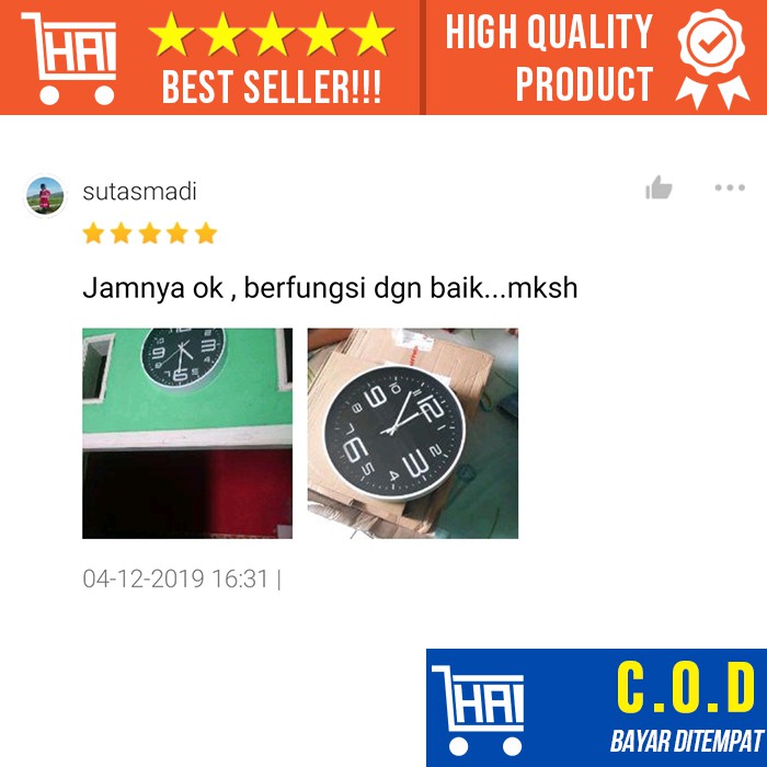 JAM DINDING ANALOG BULAT HITAM MODERN MINIMALIS BUNDAR DEKORASI RUANGAN KAMAR RUANG TAMU KAFE UNIK