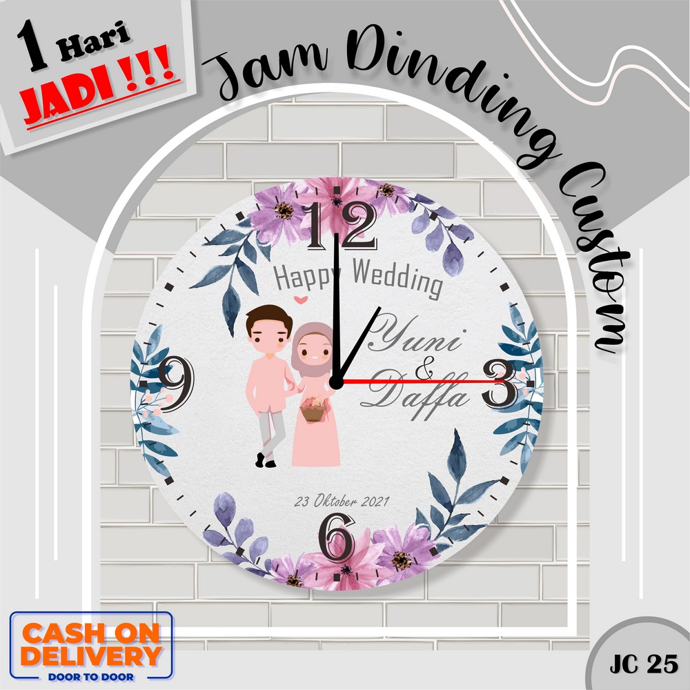JAM DINDING CUSTOM HADIAH PERNIKAHAN KADO NIKAH NIKAHAN WEDDING FOTO NAMA KAYU UNIK MINIMALIS MODERN