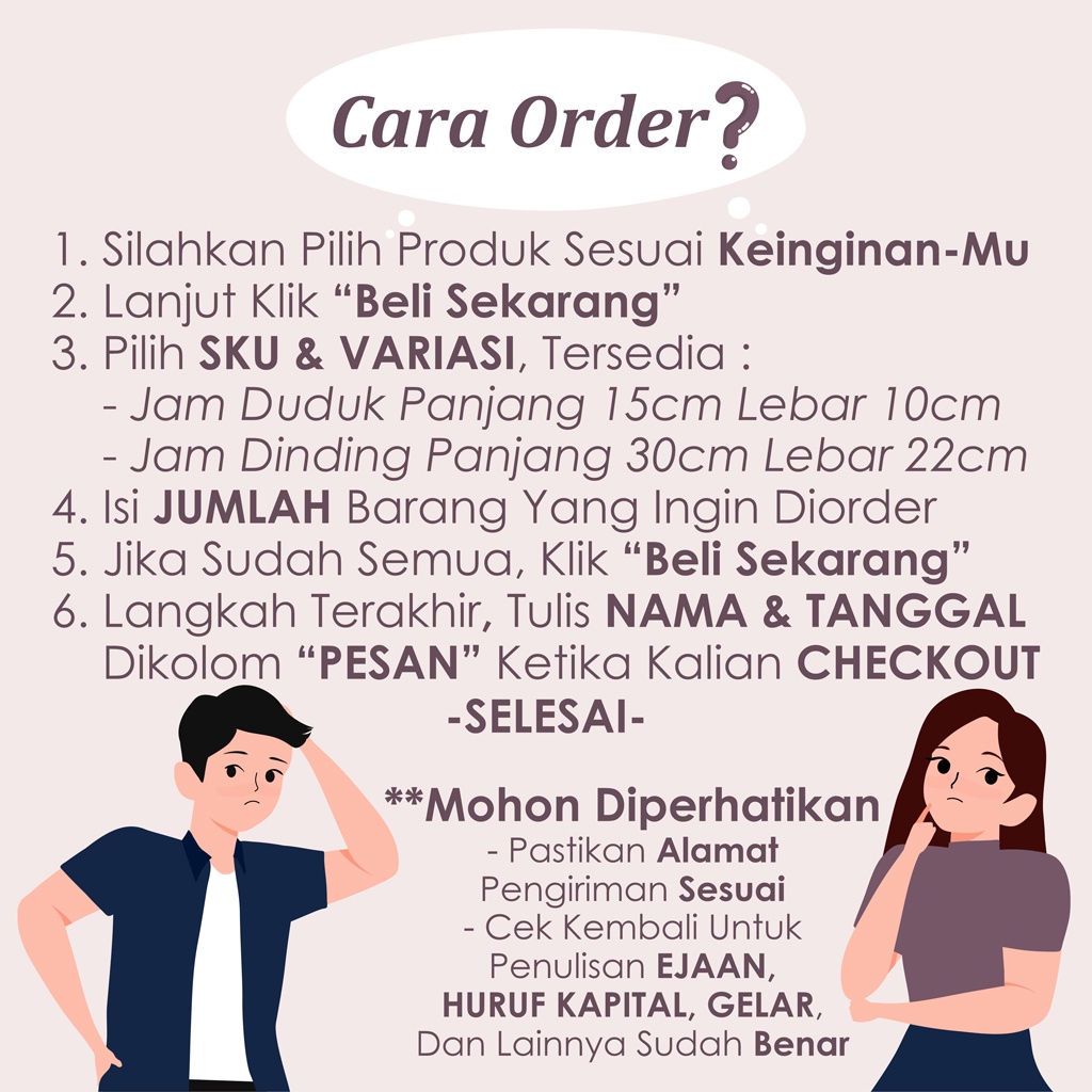 JAM DINDING CUSTOM UNIK NAMA TULISAN HAMPERS ENGAGEMENT KAYU SOUVENIR NIKAHAN MEJA DUDUK ULTAH MURAH
