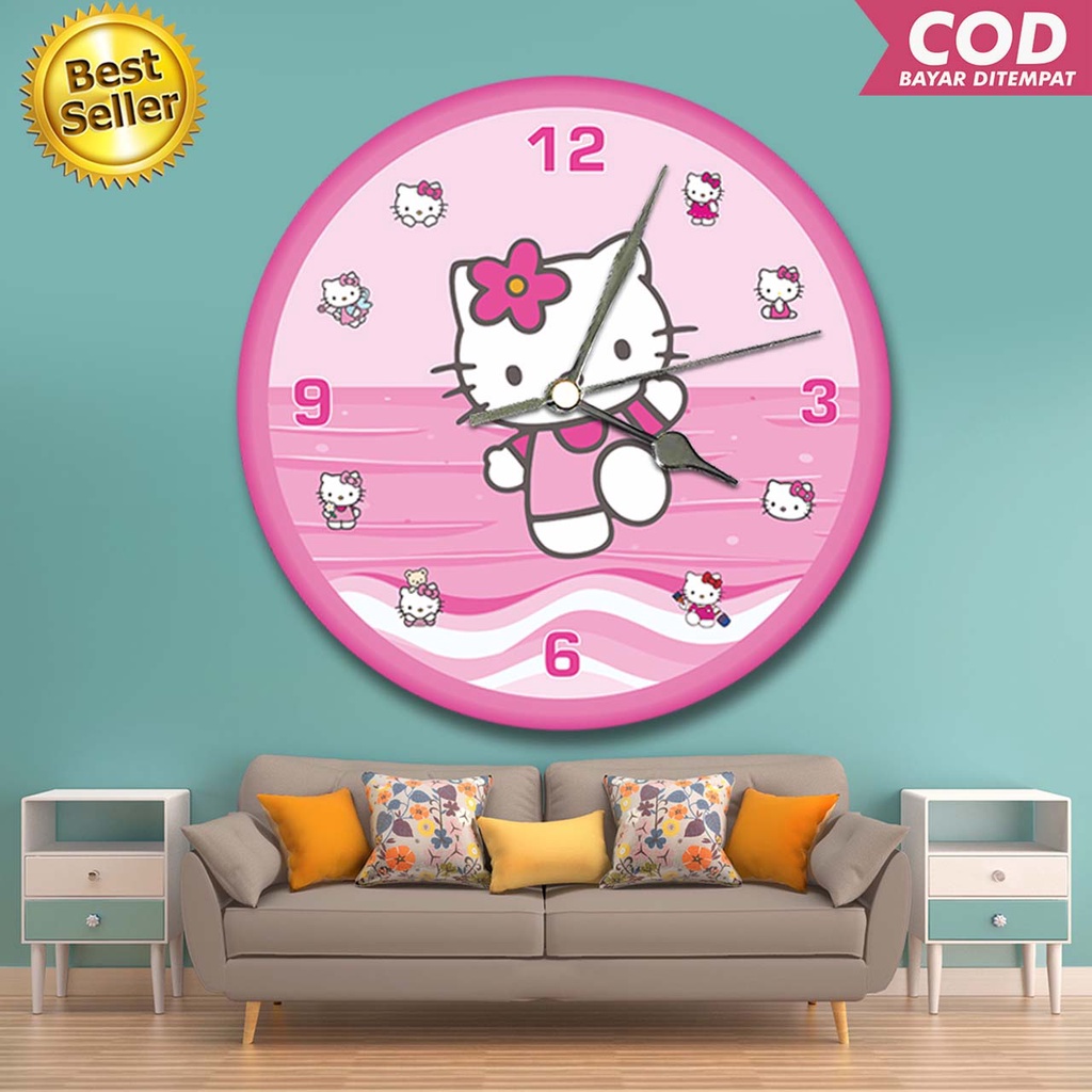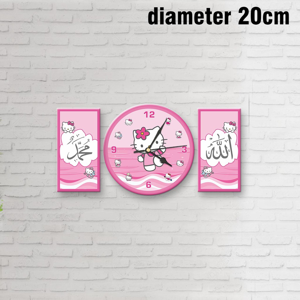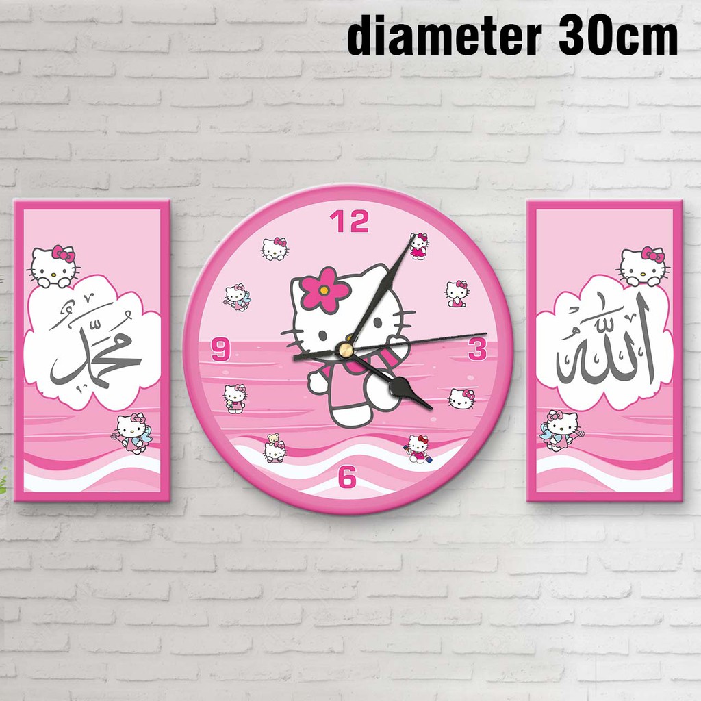 JAM DINDING KARAKTER HELLO KITTY SET / JAM DINDING KALIGRAFI HELLO KITTY / JAM LUCU / HIASAN DINDING