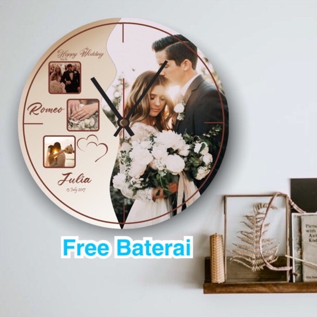 JAM DINDING KAYU CUSTOM 4 Foto Kado Pernikahan Lucu