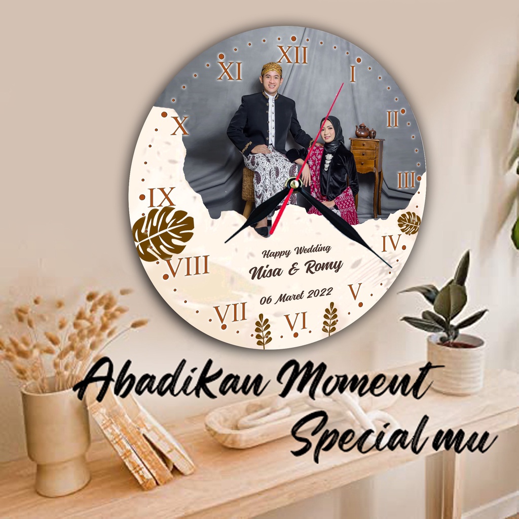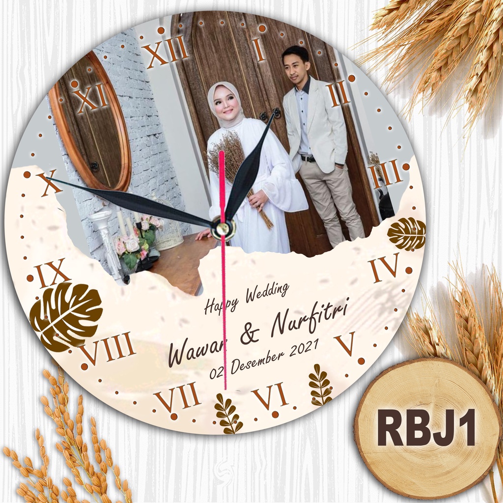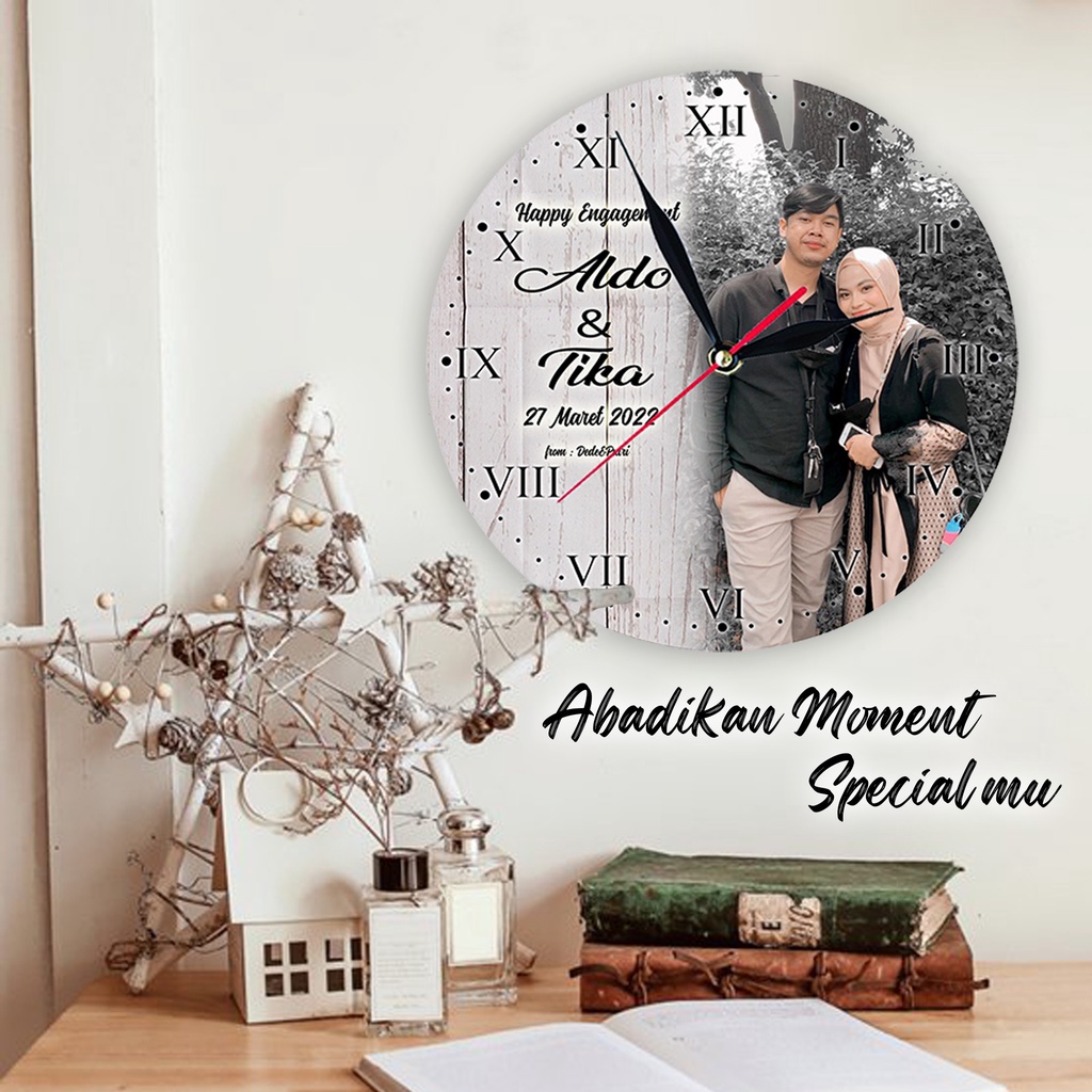 JAM DINDING KAYU CUSTOM NAMA FOTO HADIAH PERNIKAHAN UNIK KADO NIKAH NIKAHAN WEDDING ULANG TAHUN LUCU