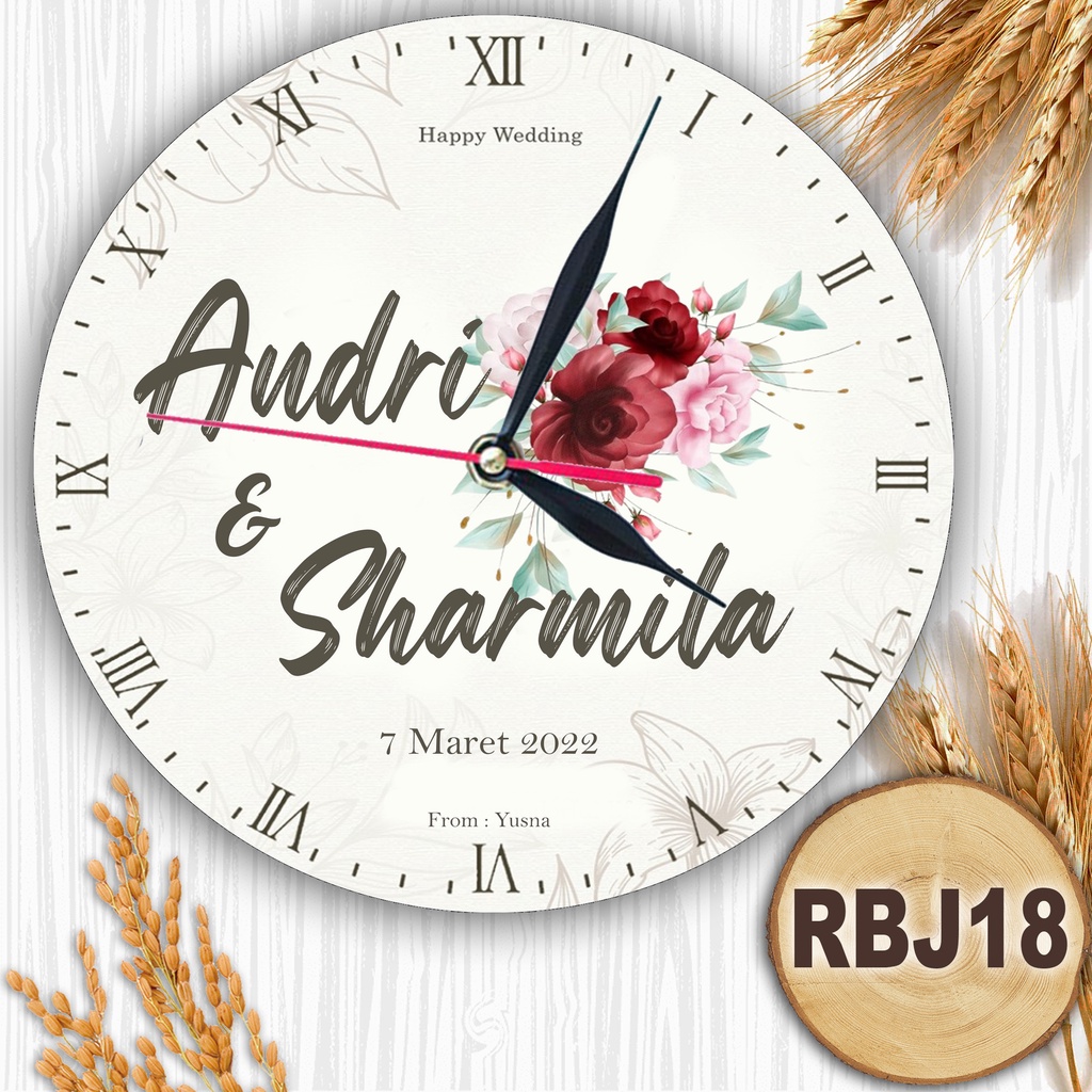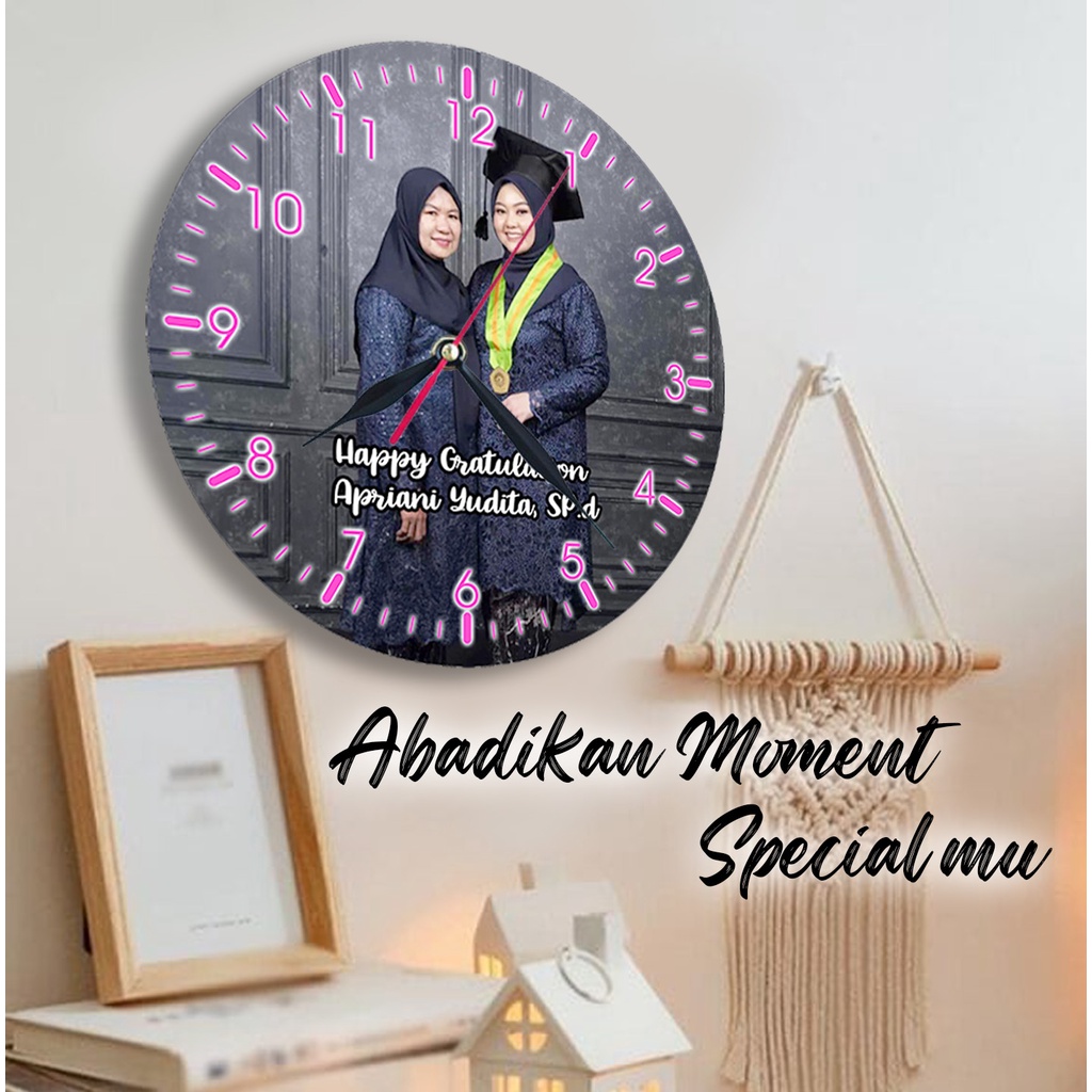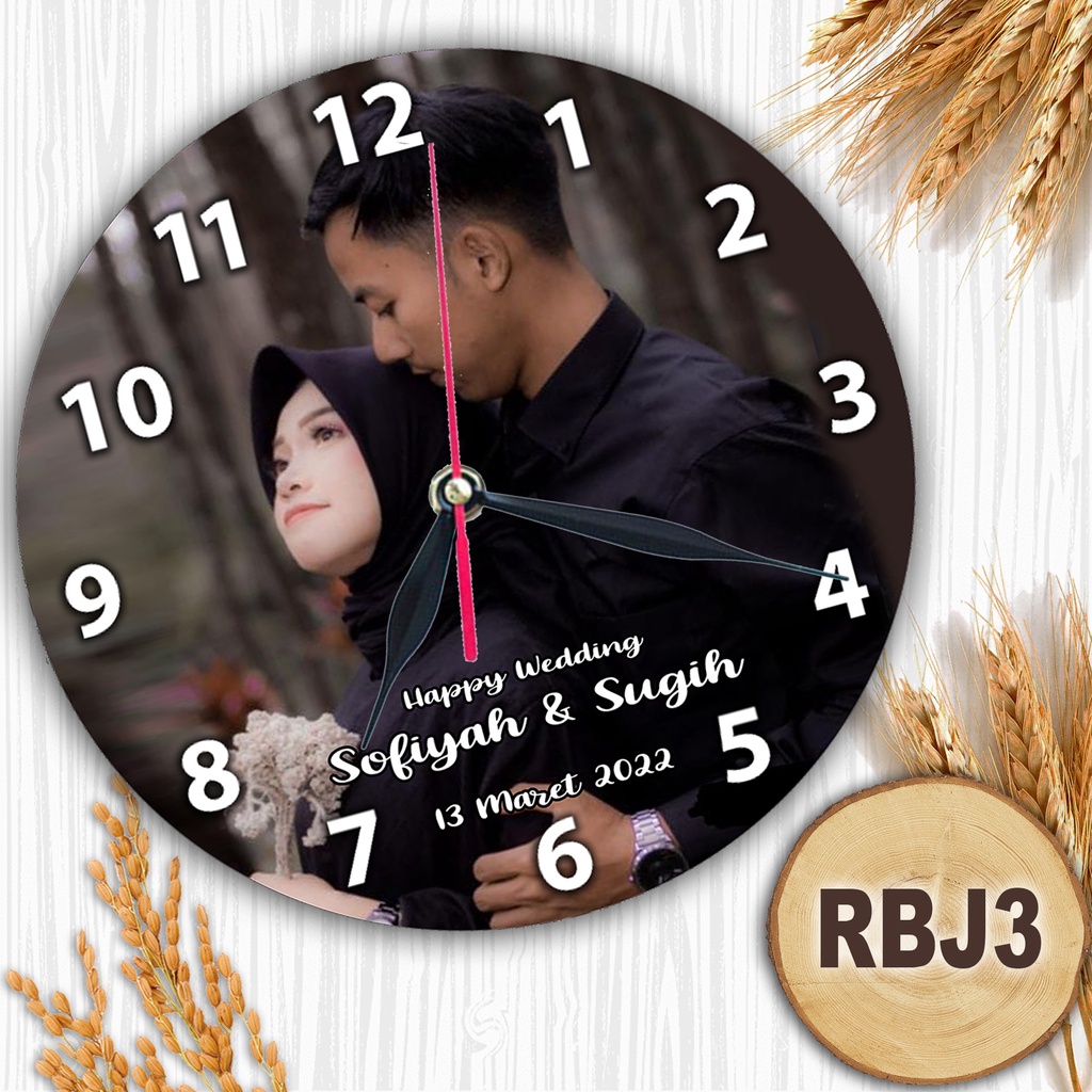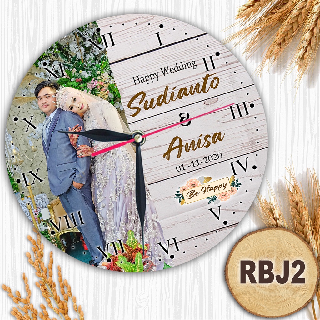 JAM DINDING KAYU CUSTOM NAMA FOTO HADIAH PERNIKAHAN UNIK KADO NIKAH NIKAHAN WEDDING ULANG TAHUN LUCU