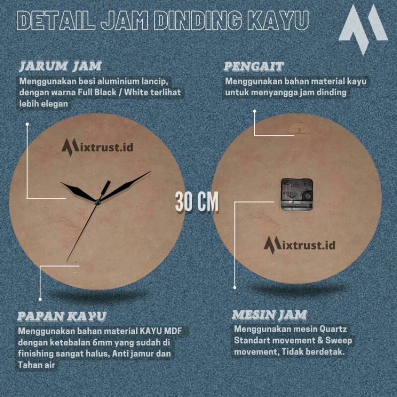 JAM DINDING KAYU SILENT MOVEMENT / JAM KAYU / JAM KAYU MDF / JAM AESTHETIC / JAM ESTETIK / JAM SCANDINAVIAN / VINTAGE / HOMEDECOR / MISTRUST.ID