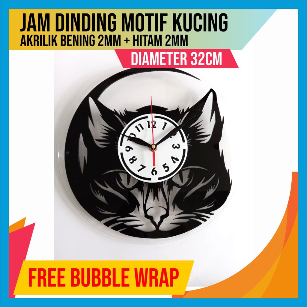 JAM DINDING UNIK AKRILIK CUSTOM MOTIF KUCING