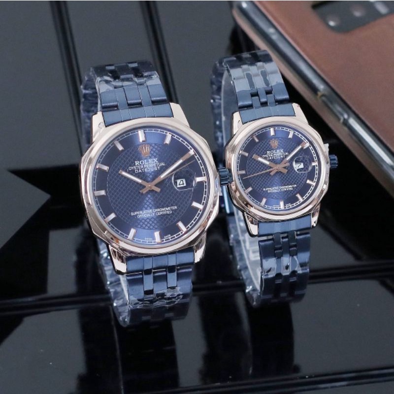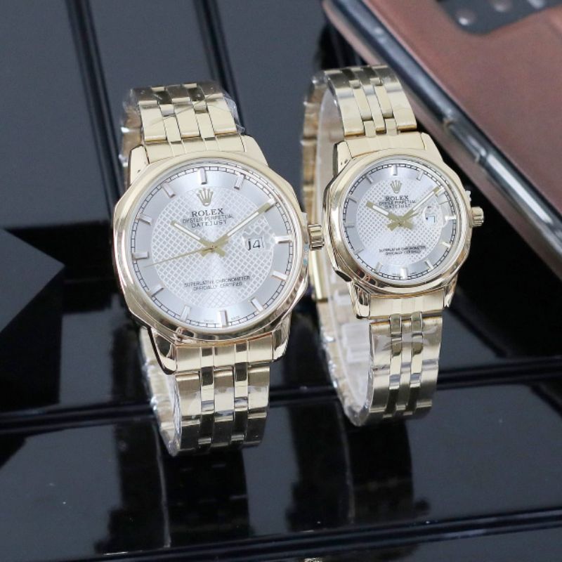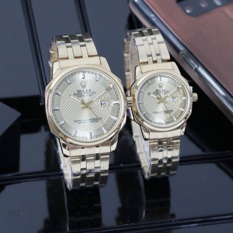 JAM TANGAN COUPLE JAM TANGAN PASANGAN BAHAN RANTAI TANGGAL PLUS BOX