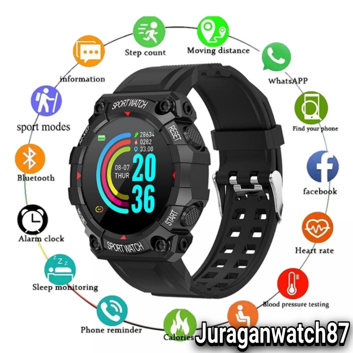 JAM TANGAN PINTAR HP ANDROID SMARTWATCH FD68 ANTI AIR NOTIF WHATSAPP TELEPON SMS REMOTE CAMERA LED MONITOR KESEHATAN SENSOR DETAK JANTUNG