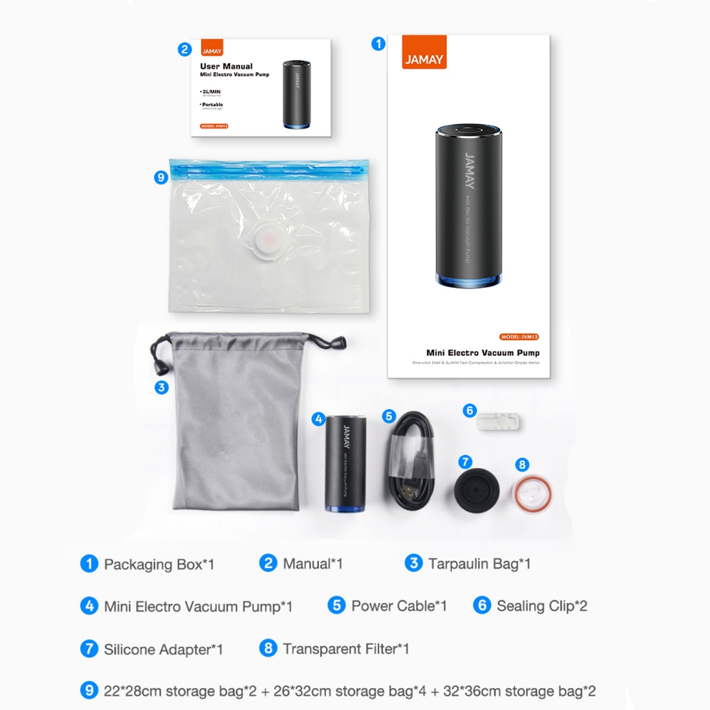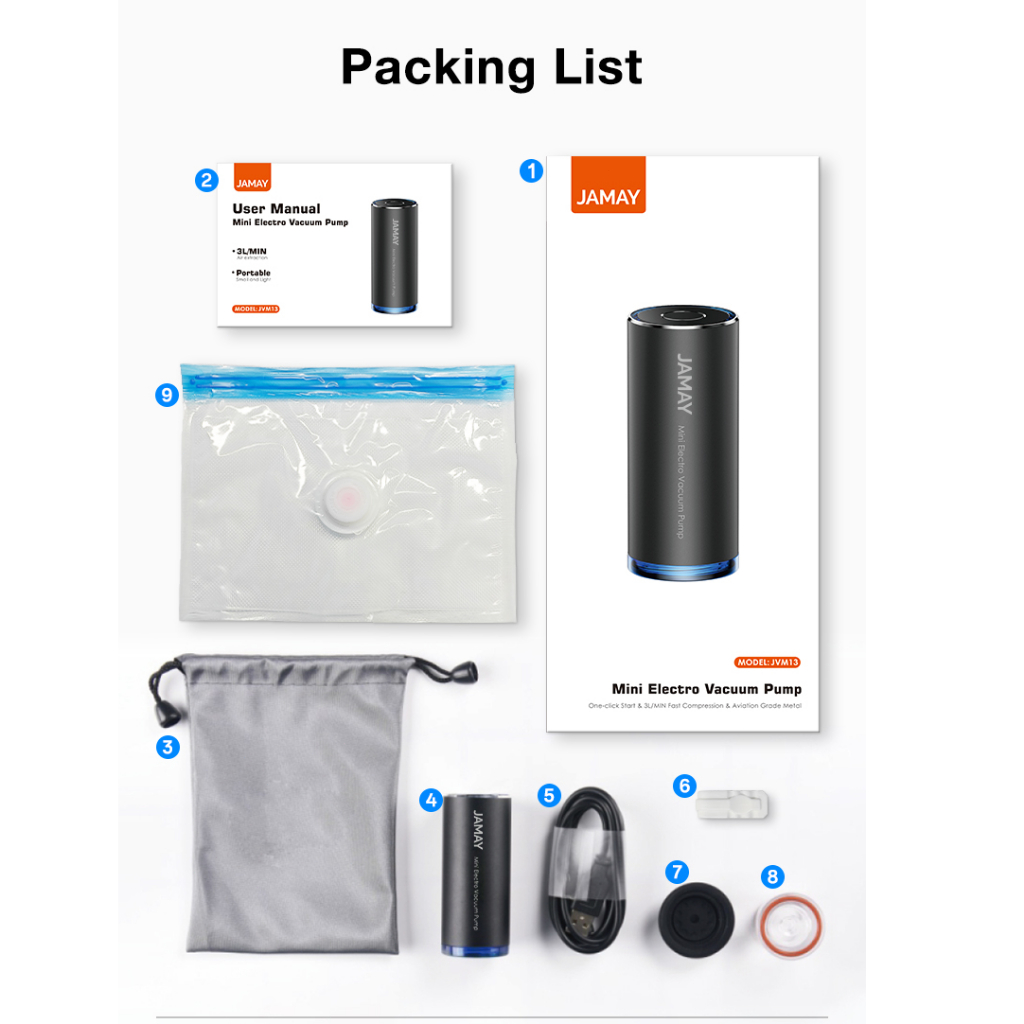 Jamay Mini Pompa Vakum Elektrik Portabel Vacum Baju Alat Vacuum Bag Vakum Pakaian & Pompa Udara Kolam/Kasur Traveling VM13