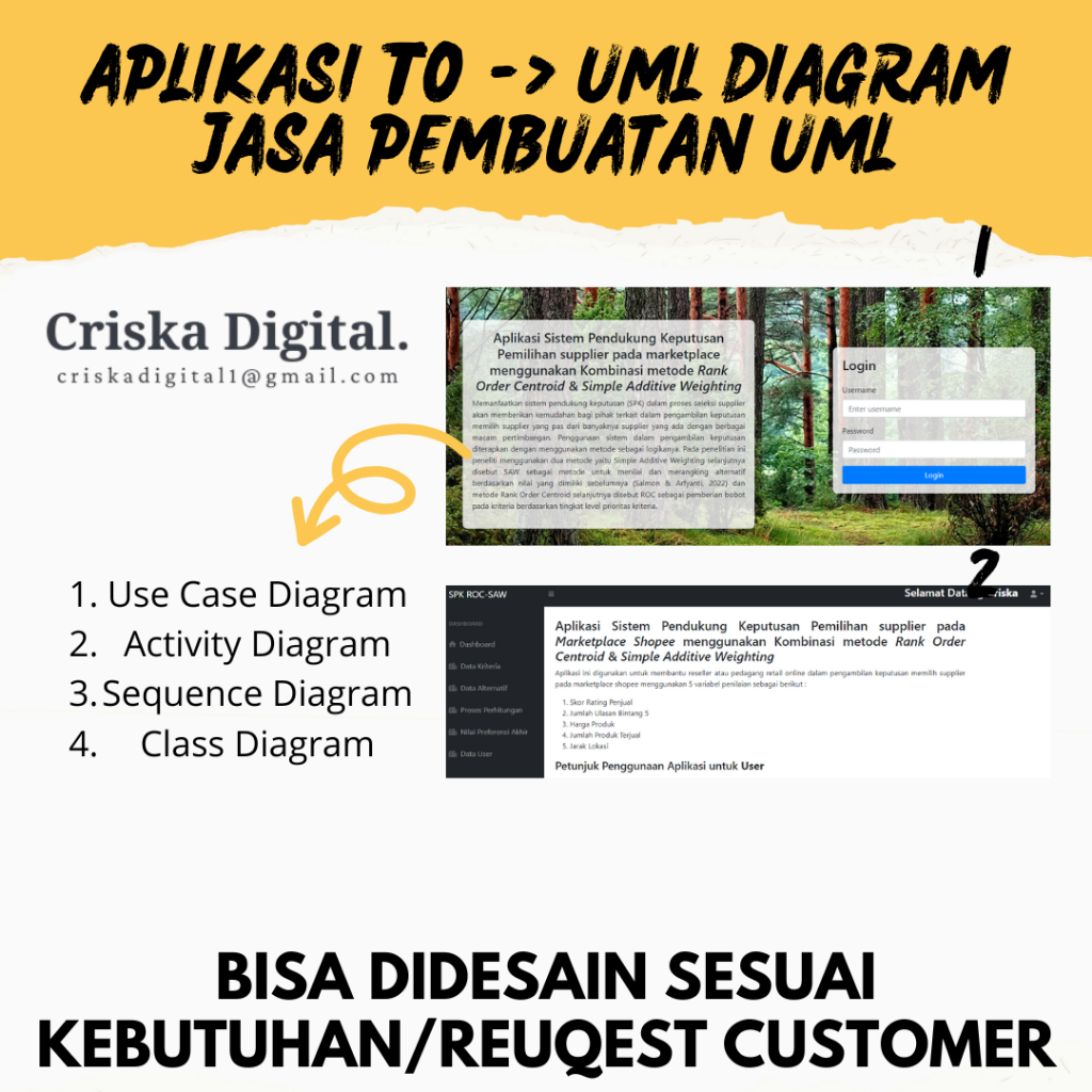 JASA DESAIN UML DIAGRAM | JASA DESAIN USE CASE DIAGRAM | JASA DESAIN ACTIVITY DIAGRAM SEQUENCE | JASA DESAIN DIAGRAM CLASS DIAGRAM DARI APLIKASI YANG SUDAH ADA BISA DARI YANG BELUM ADA APLIKASINYA | Criska Digital