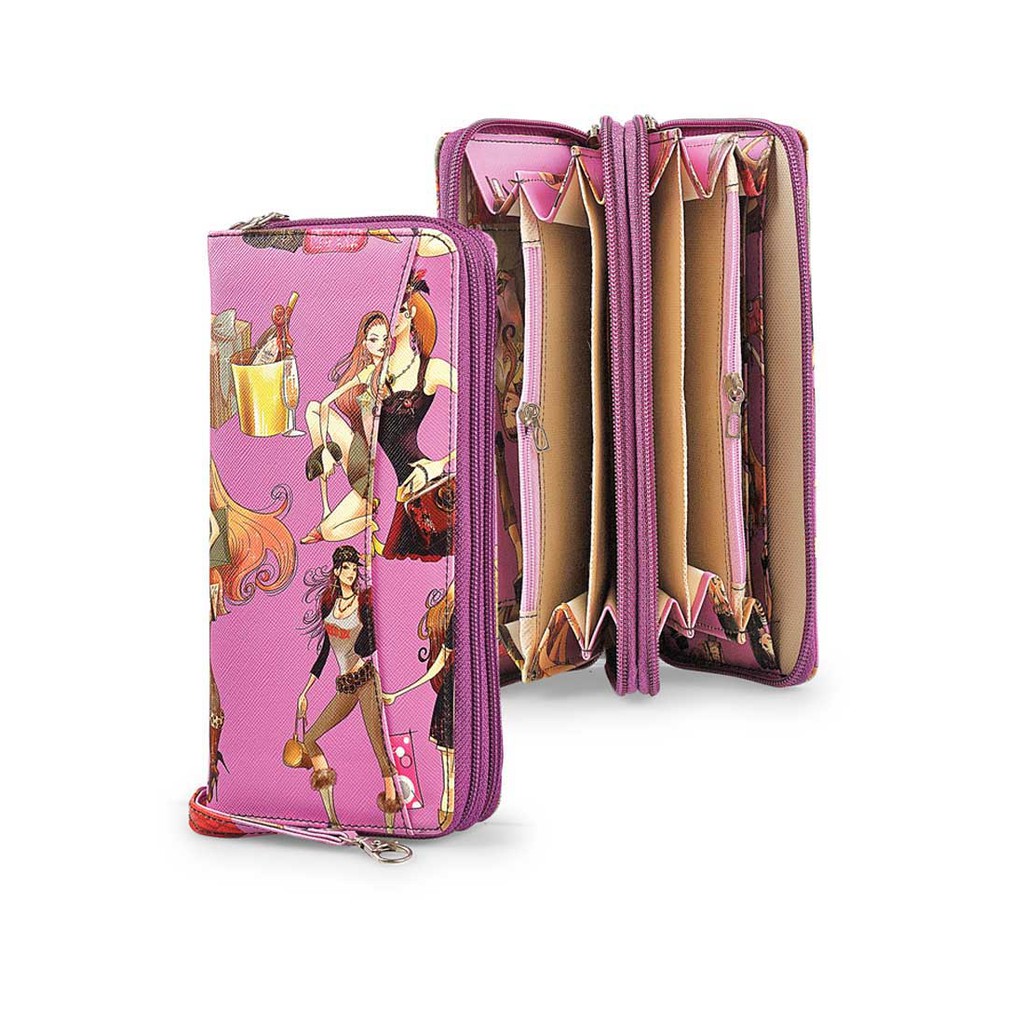 JAVA SEVEN Dompet panjang wrislet wanita | Dompet dengan tali pergelangan | Pink kombinasi DKI 606