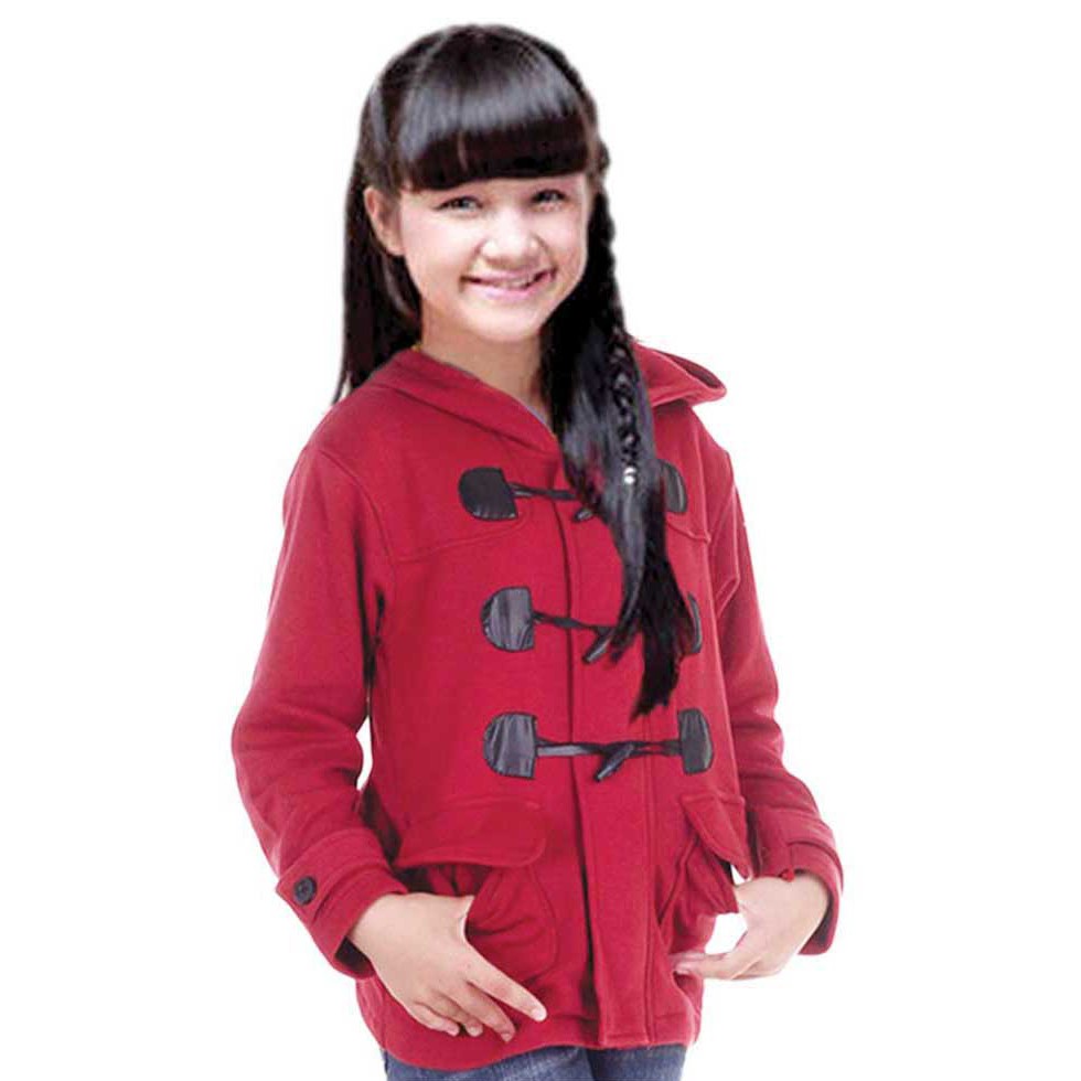 JAVA SEVEN Jaket anak cewek | Menggunakan penutup kepala hoodie | Fleece merah SKR 802