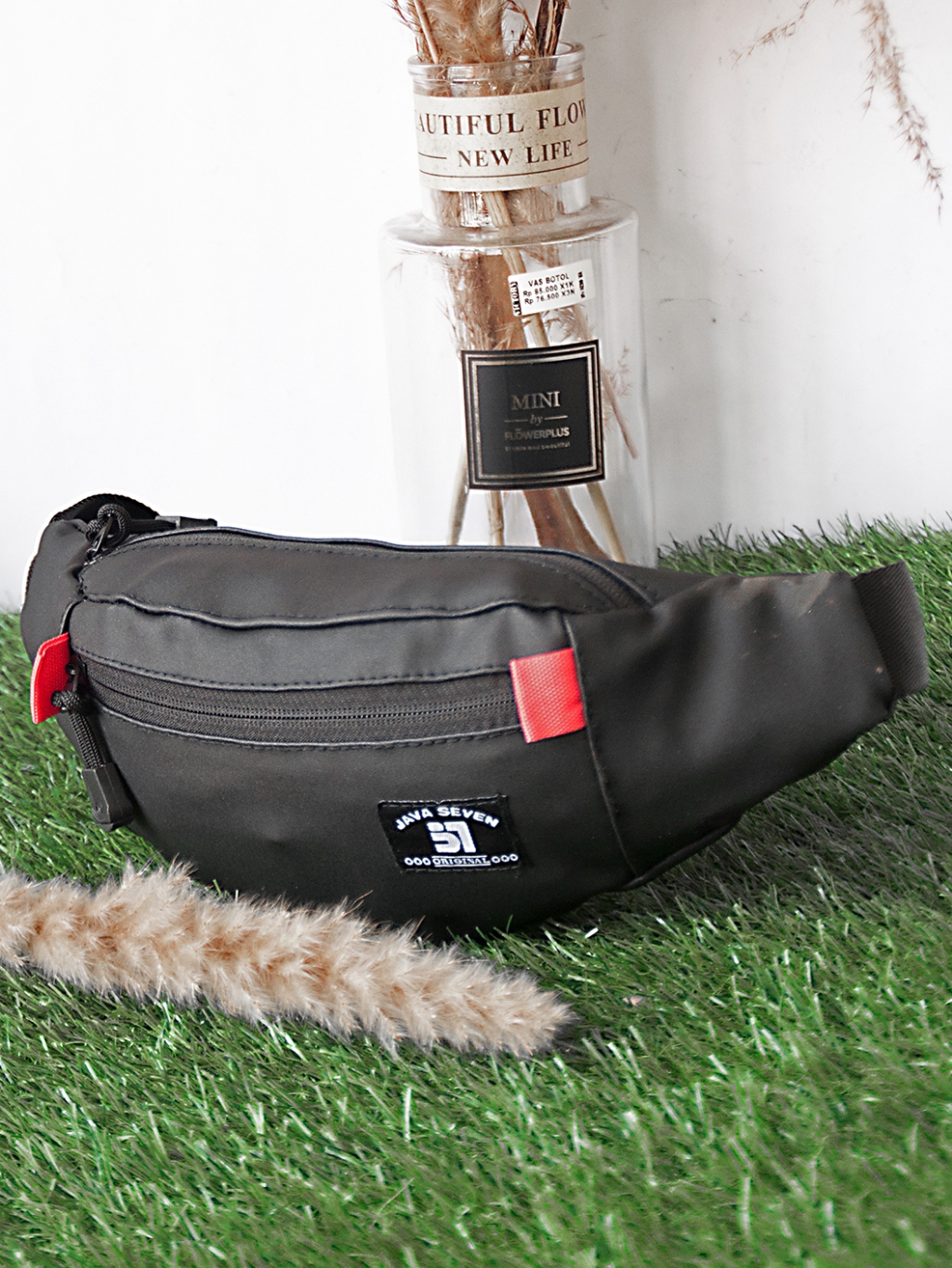 JAVA SEVEN Tas pinggang pria weistbag anti air / Tas bersepeda joging / Sintetis hitam / TOJ 004