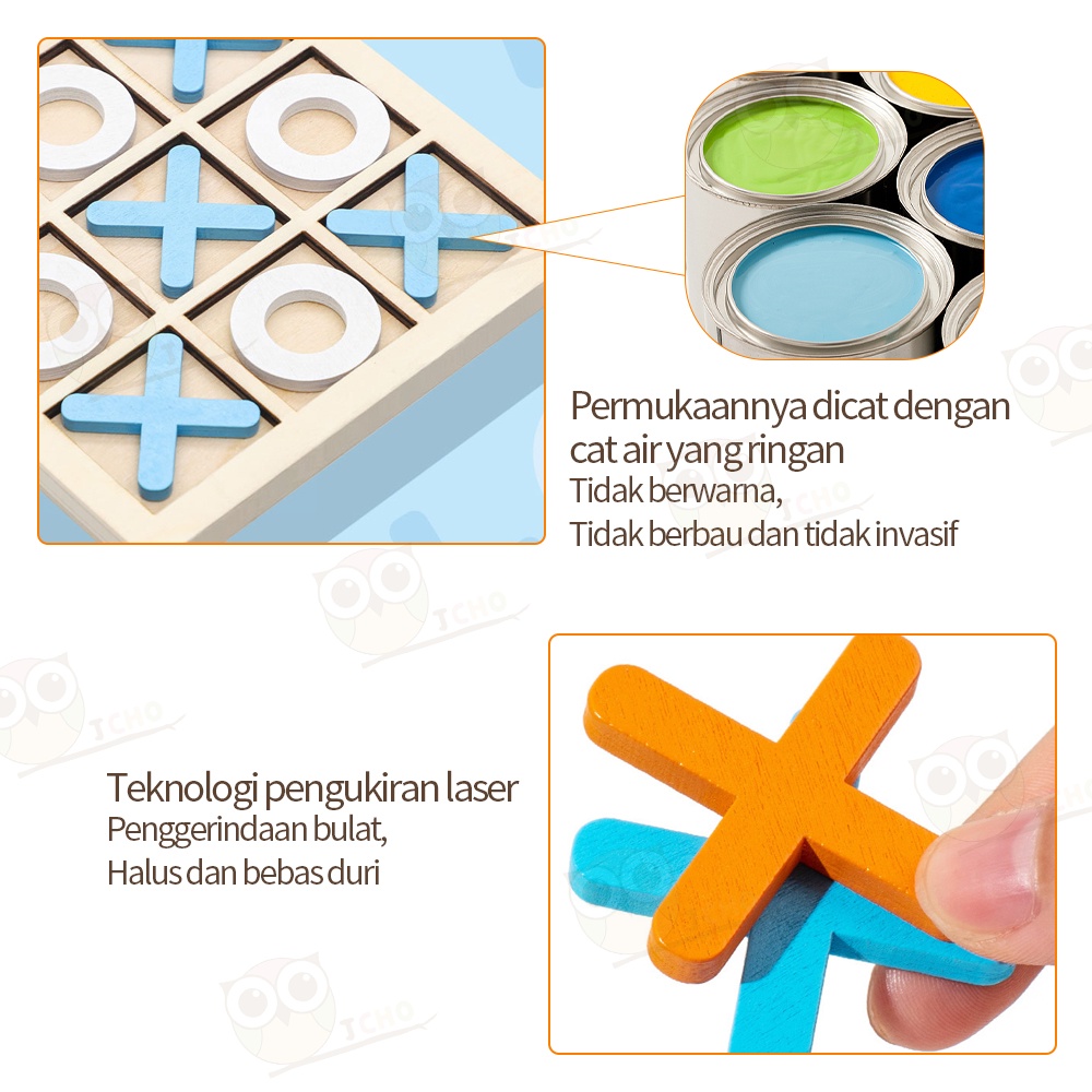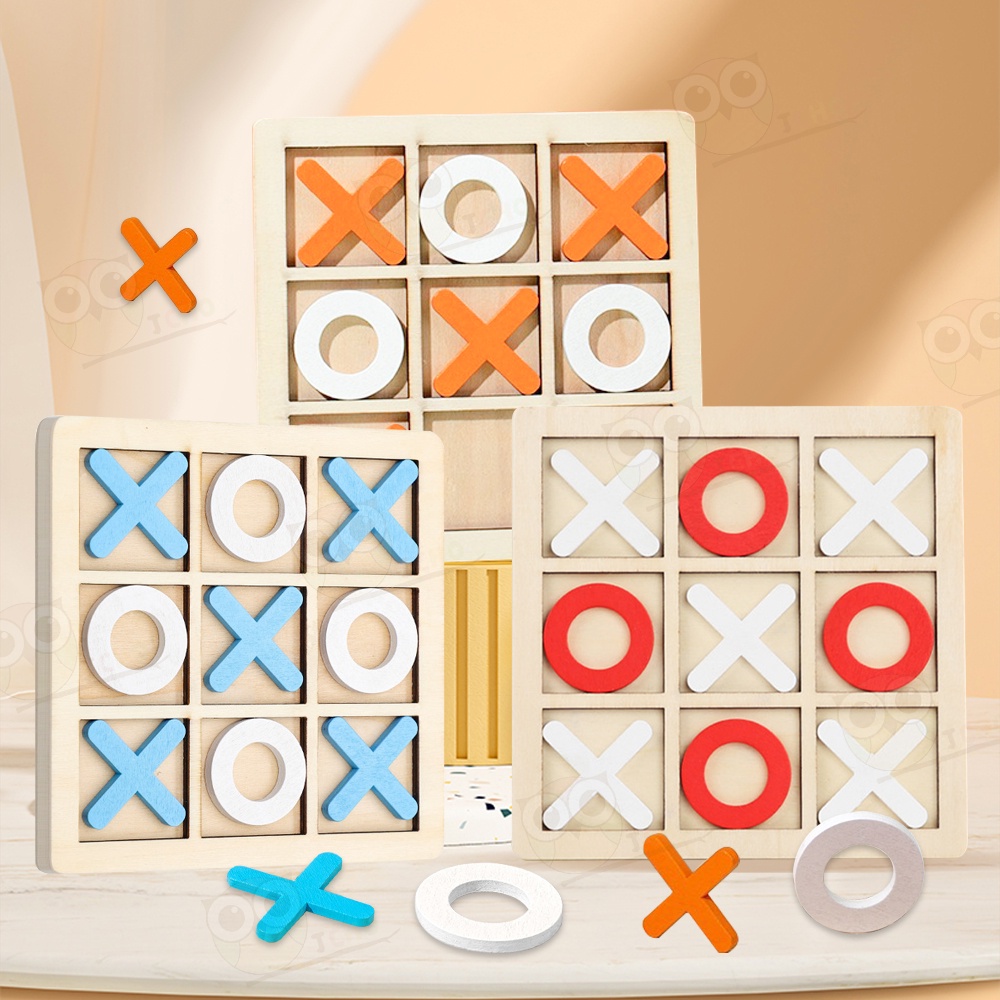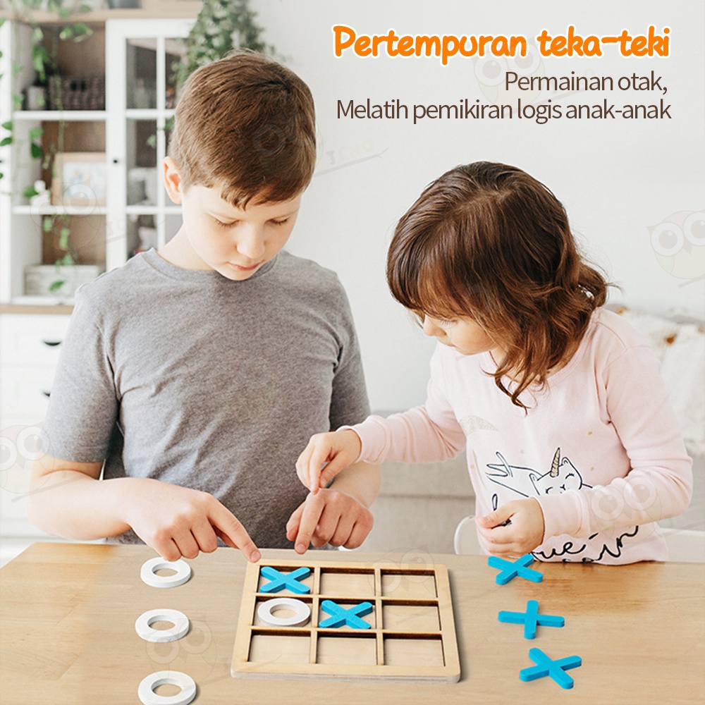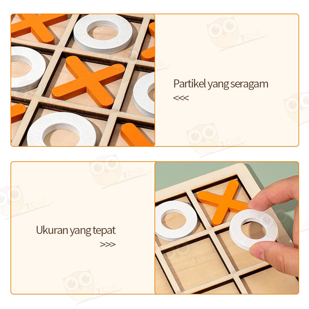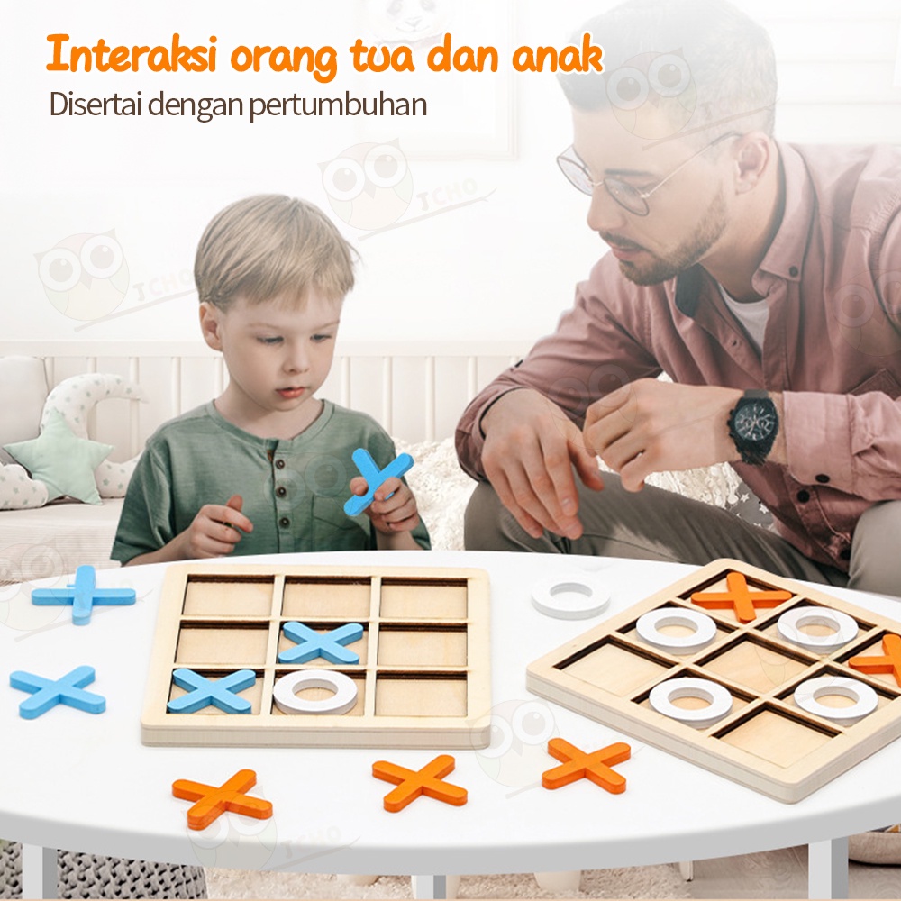 JCHO Mainan Edukasi Anak Tic Tac Toe Board Game Puzzle Kayu XO Anak Wooden Toys