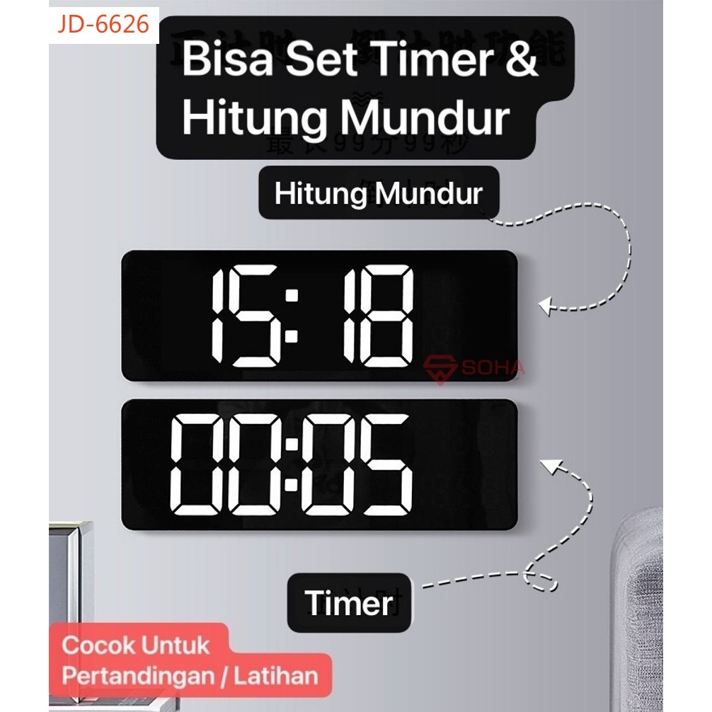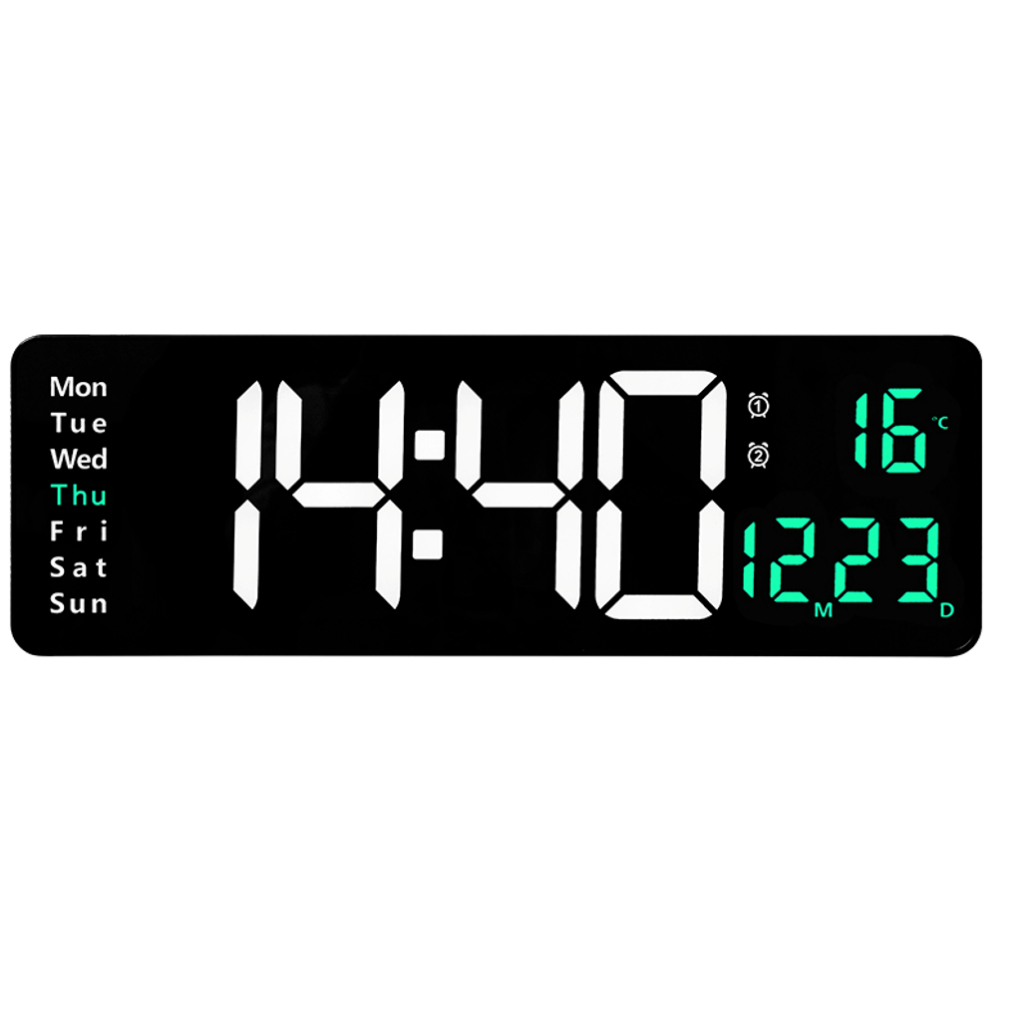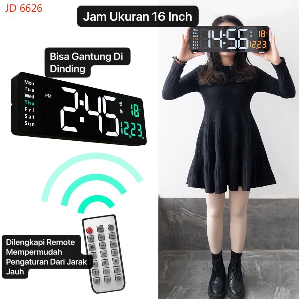 JD-6626 16 Inch Hijau Jam Digital LED Besar Tampilan Jelas Dinding / Kalender Alarm Clock Weker Timer Countdown Smart Watch Suhu Temperatur