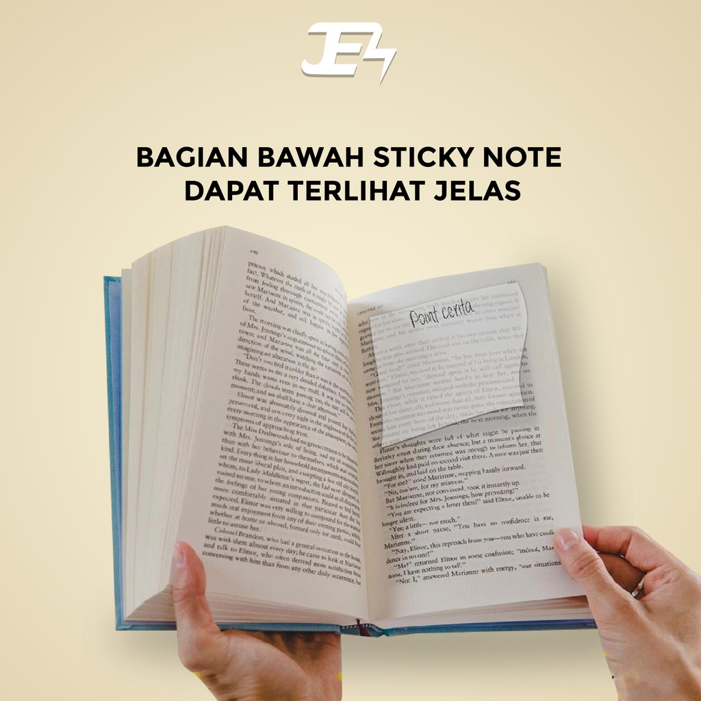 JE Sticky Note Transparan Isi 50 Lembar Waterproof Serbaguna Untuk Kantor Sekolah / Kertas Memo Tahan Air / Memo Kertas Tempel Anti Air / Label Stickers Catatan Bening Stockami