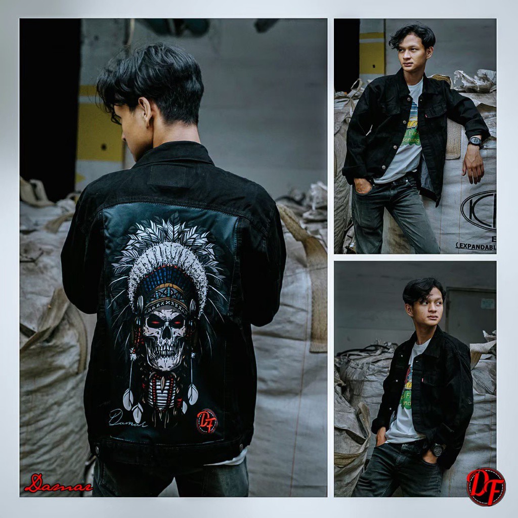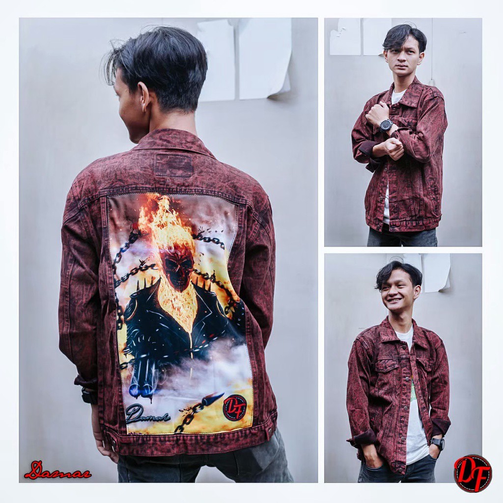 JEANS LEVI PRINTING GHOST RIDER-JAKET JEANS SANDWASH-JEANS HITAM-JEANS DENIM-JAKET LEVI COWO-JAKET JEANS PRIA