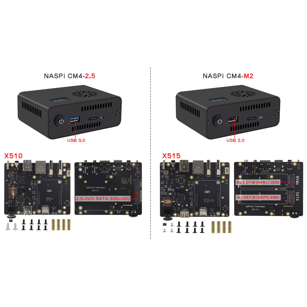 JENNAIRA Geekbord NASPi CM4-M2 NAS Storage Kit for Raspberry Pi Compute Module 4| Pi CM4 M2 SATA & NVMe SSD Storage Solution