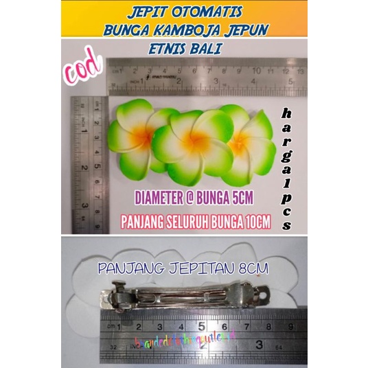 JEPIT RAMBUT OTOMATIS BUNGA KAMBOJA & BUNGA JEPUN KHAS BALI / JEPITAN OTOMATIS / JEDAI OTOMATIS - 8 CM - 1 PCS