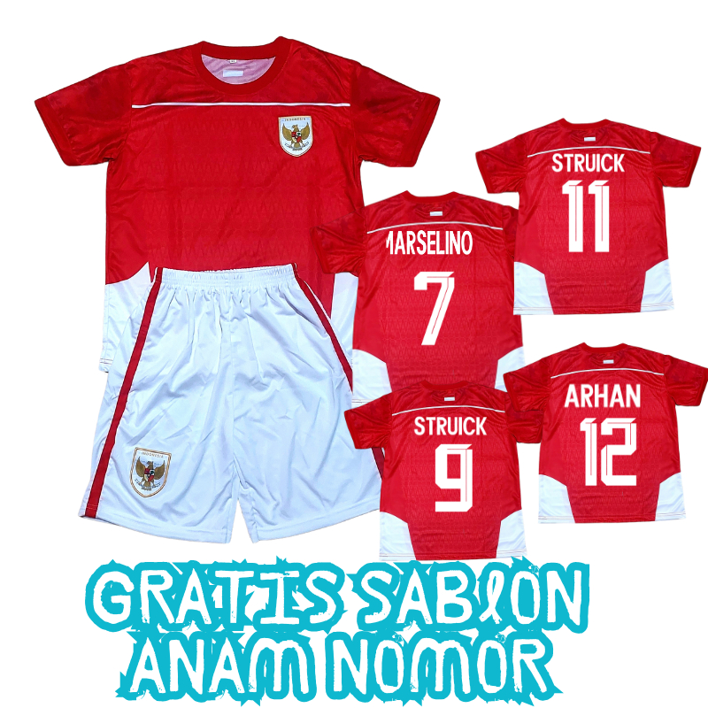 JERSEY BAJU BOLA TIMNAS PREMIUM/SETELAN BAJU BOLA TIMNAS MERAH USIA 7-15THN