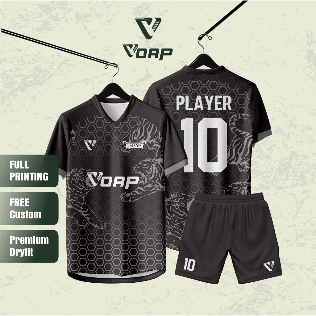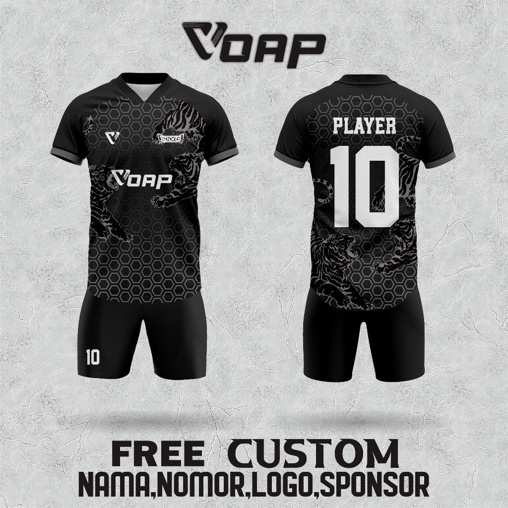 JERSEY FUTSAL / BAJU BOLA CUSTOM FULL PRINTING GRATIS NAMA LOGO DAN SPONSOR TIGER STRONG