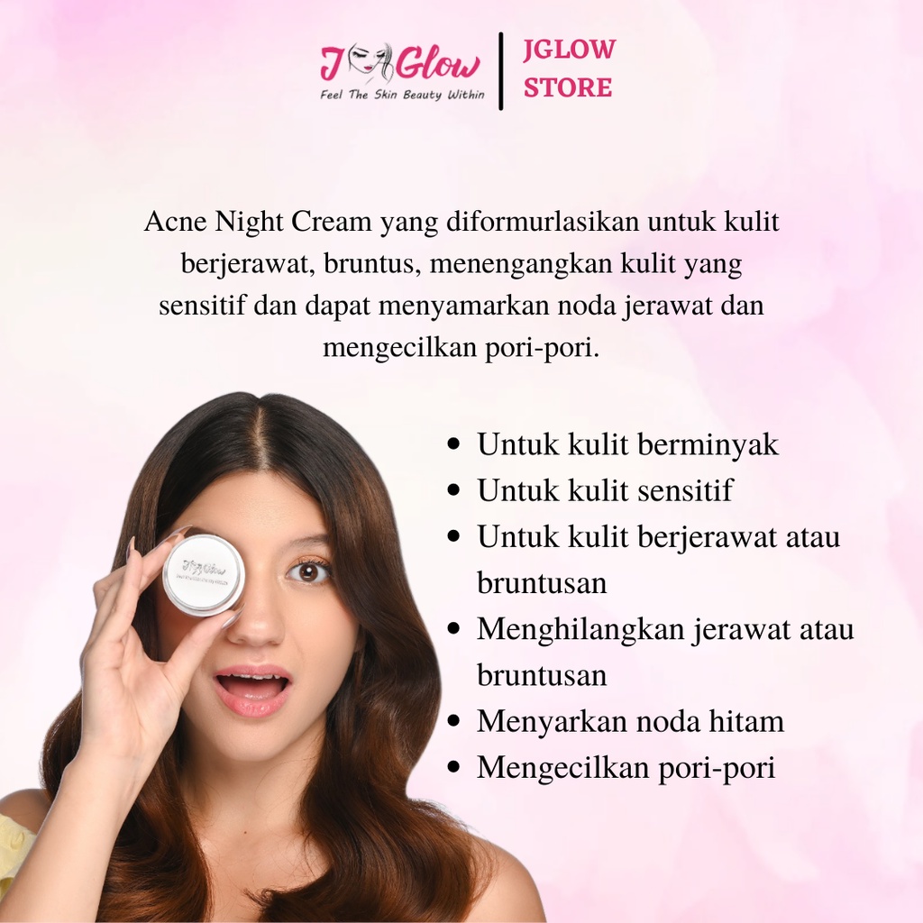 JGlow Skincar Night Cream Acne | Cream Perawatan Wajah Bruntusan Whitening Berjerawat BPOM - 12.5 gr