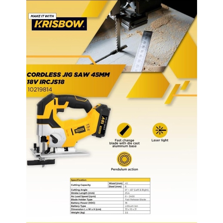 JIG SAW CORDLESS KRISBOW 18VOLT 10219814