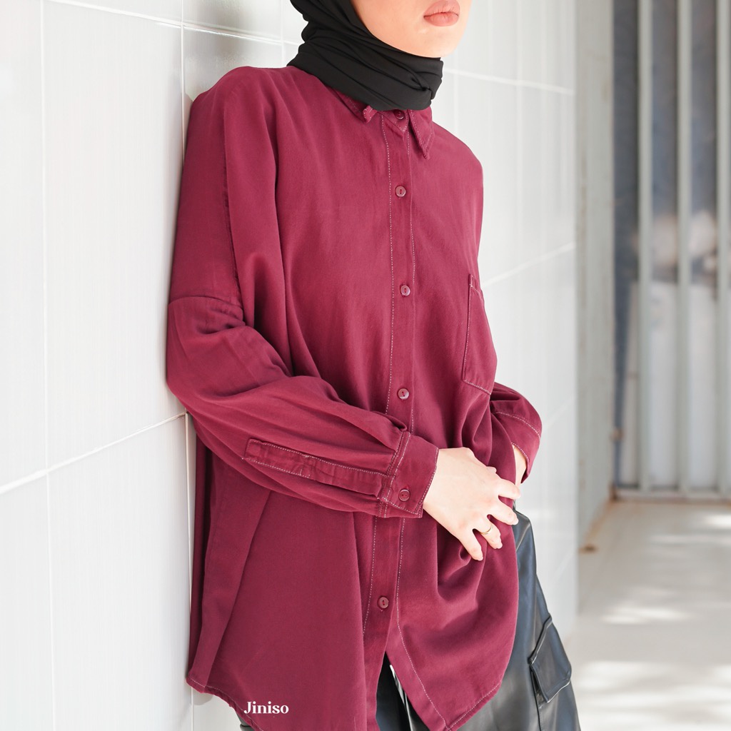 JINISO Kemeja Oversize Shirt Maroon Vibe HYPER ACTIVE
