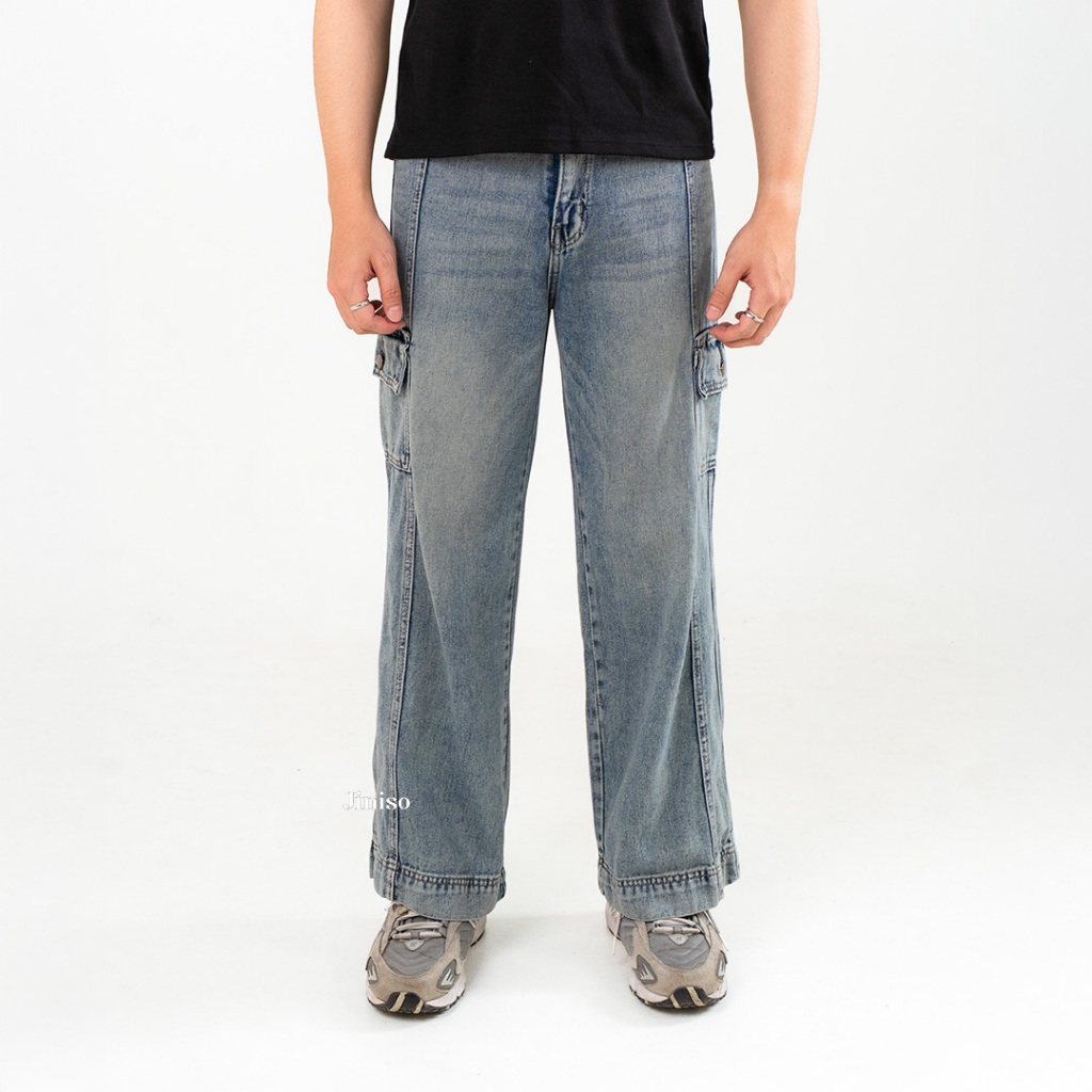 JINISO Loose Cargo Denim Jeans Pria