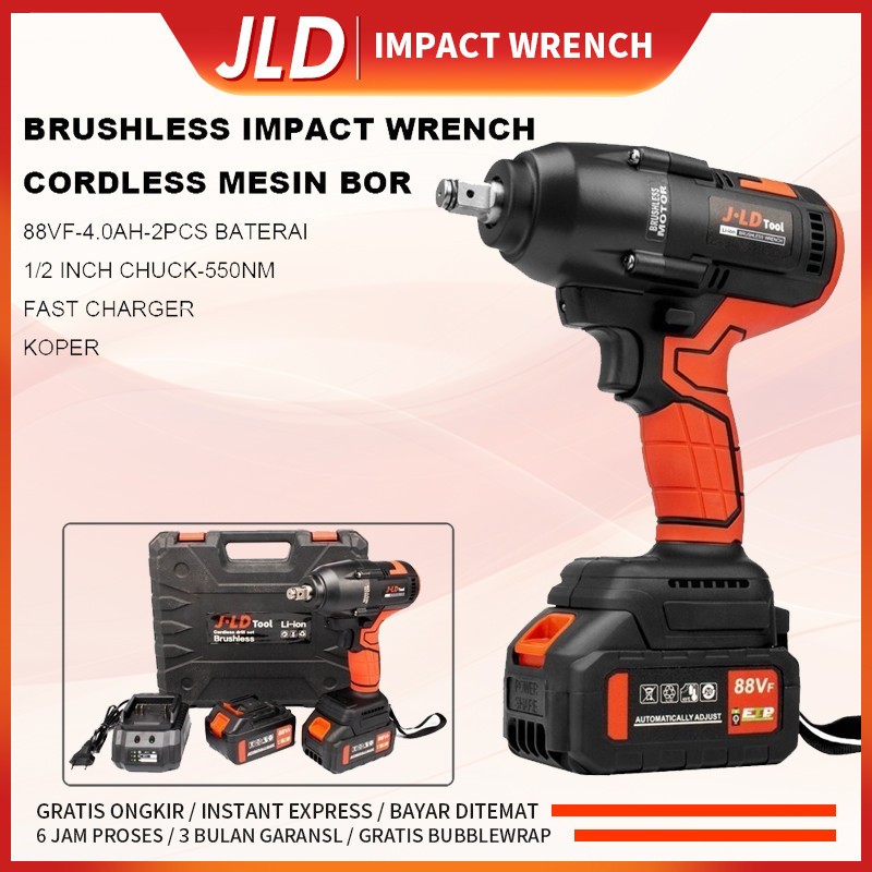 JLD 88VF Impact bor baterai impact wrench 13mm mesin bor impact bor cas impact baterai jld