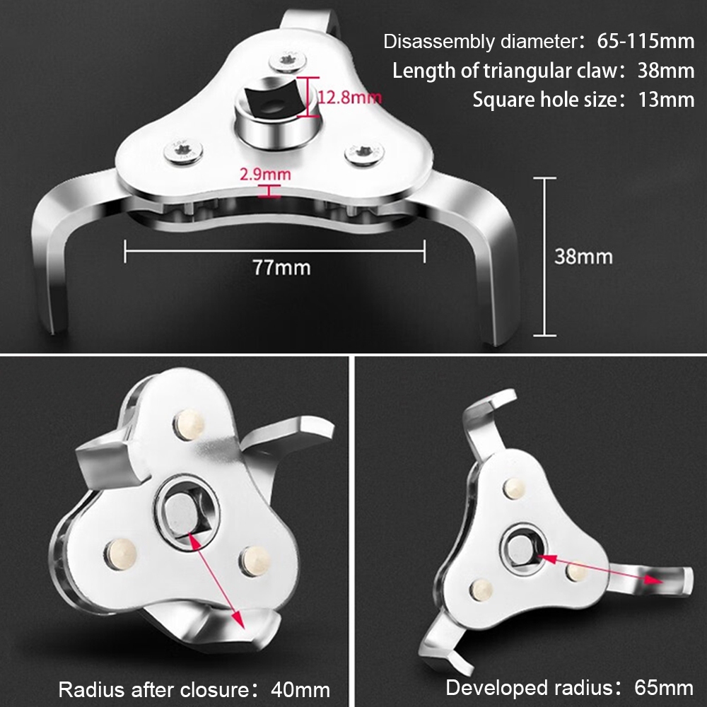JLD Kunci Filter Oli Universal Silver 3 Jaw Kunci Pembuka Filter Oli Mobil 63 - 102MM Alat Perkakas Oil Filter Wrench Adjustable