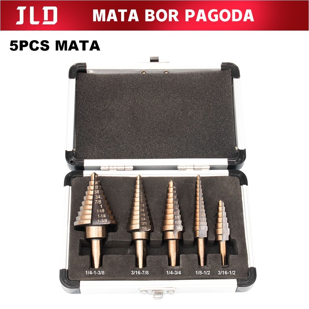 JLD Mata Bor Pagoda HSS mata bor step bor Spiral HSS Steel Titanium Spiral Besi Kuningan Kayu Plastik Step Drill Besi kerucut Cone drill hole saw Mata bor set